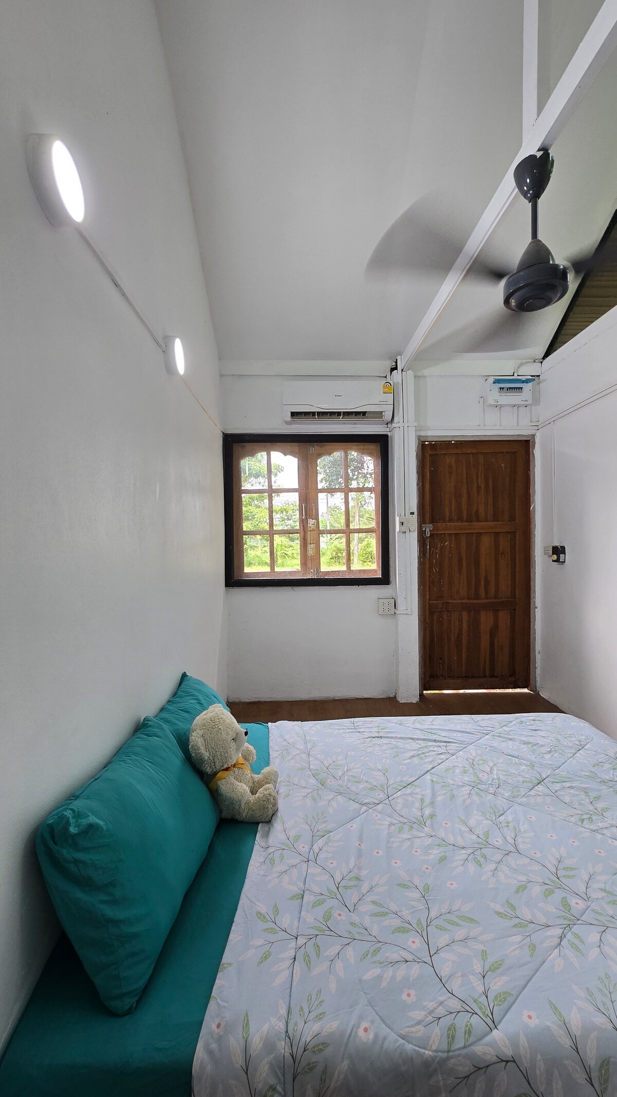 ที่นี่เป็นบ้านพักสไตล์ไม้เก่ารีโนเวทใหม่ ที่ยังเก็บรายละเอียดเสน่ห์เดิมๆ ไว้ครบ แต่เติมความโมเดิร์นแบบอบอุ่นเข้าเหมาะกับคนที่อยากมาพักผ่อนท่ามกลางธรรมชาติจริงๆ เปิดหน้าต่างมาก็เจอ วิวภูเขาหินปูนยักษ์ ตระหง่านอยู่ตรงหน้า เหมือนภาพวาดจากธรรมชาติ นอนบนเตียงนุ่มๆ แล้วมองวิวได้เลย ไม่ต้องขยับไปไหน อากาศดีทั้งเช้าและเย็น บางช่วงมีค้างคาวบินผ่านตรงกระจกบานใหญ่เลย