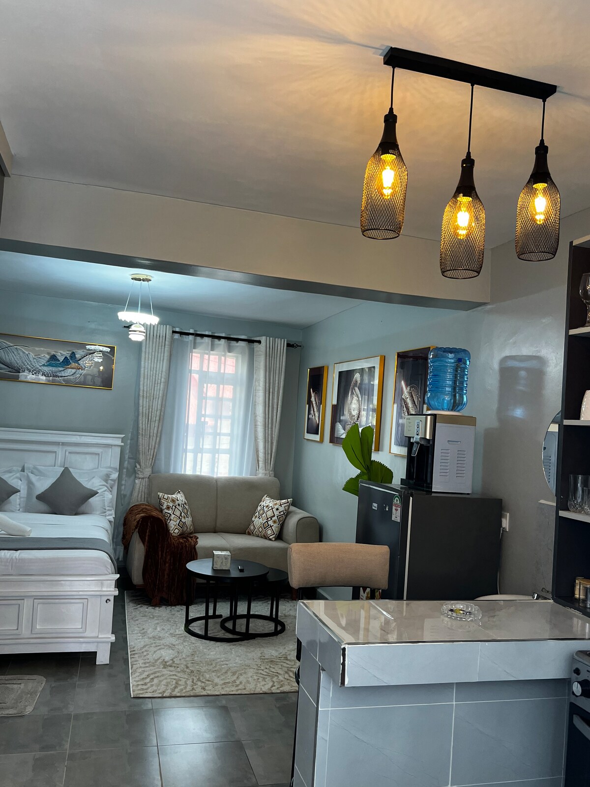 Pobjegnite u ovaj elegantni afrički dom sa 5* sa nevjerovatnim modernim dekorom na 13. spratu, sa kojeg se pruža pogled koji oduzima dah na Lavington. Opustite se uz TV od 85inča i opcije strimovanja kao što su Netflix, HBO i druge. Gospodar se može pohvaliti bračnim krevetom, a kuhinja je potpuno opremljena modernim aparatima, uključujući aparat za espreso. Uživajte u besplatnom parkingu, brzom Wi-Fi-ju, balkonu s pogledom na zalazak sunca i pristupu teretani, grijanom bazenu i vrtu na krovu - sve uz non-stop bezbjednost kako biste bili spokojni.