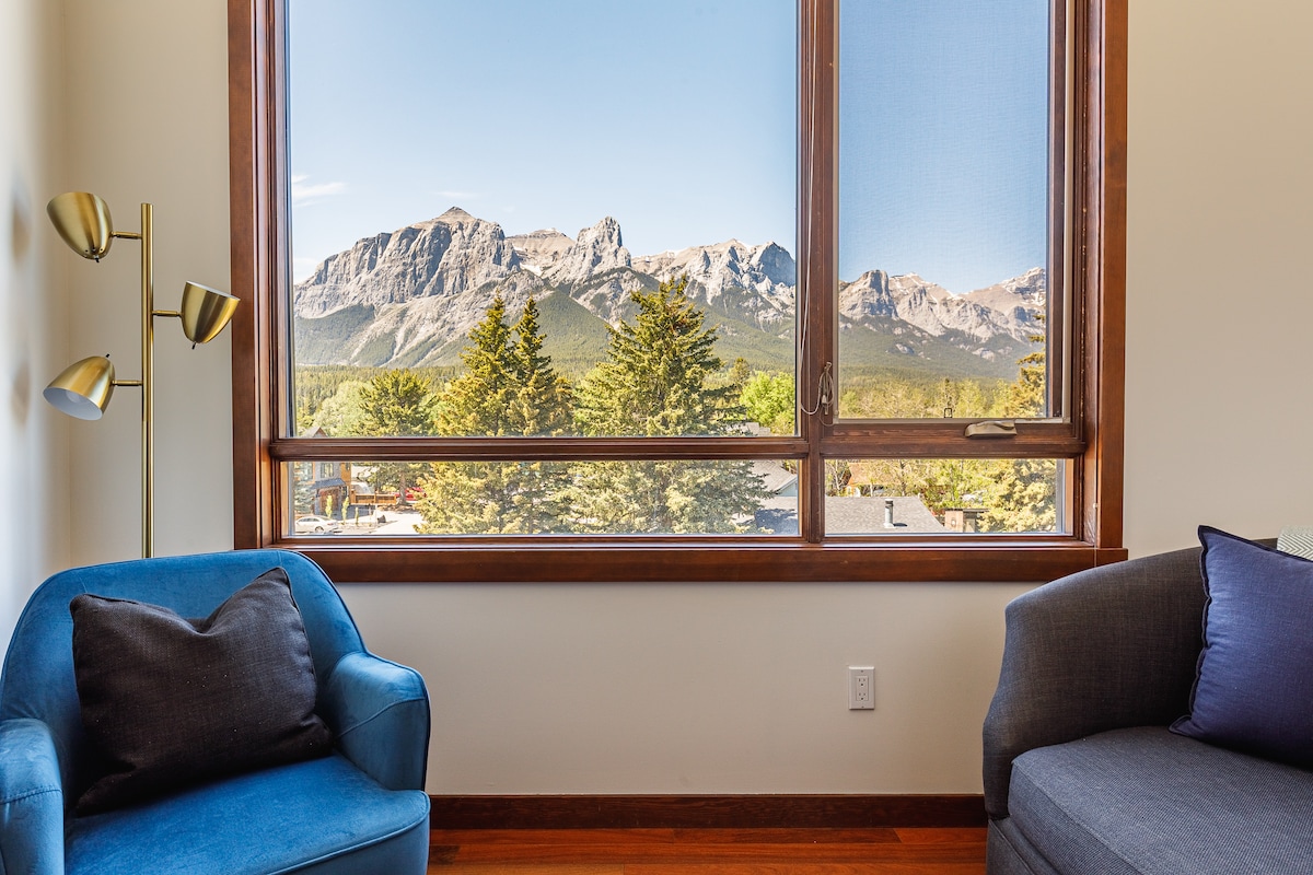 Ovaj luksuzni, luksuzni stan od 1700 kvadratnih metara, ima sve što vam je potrebno. Uživajte u predivnoj otvorenoj kuhinji, ogromnom kaminu i nadsvođenim plafonima koji pokazuju prekrasan panoramski pogled na planine! Ispred vašeg stana nalaze se staze za šetnju, kafići, namirnice, restorani i još mnogo toga. Ovo mjesto za odmor je idealno za parove, porodice i grupe koje traže vrhunsku bazu za istraživanje kanadskih Stjenjaka.