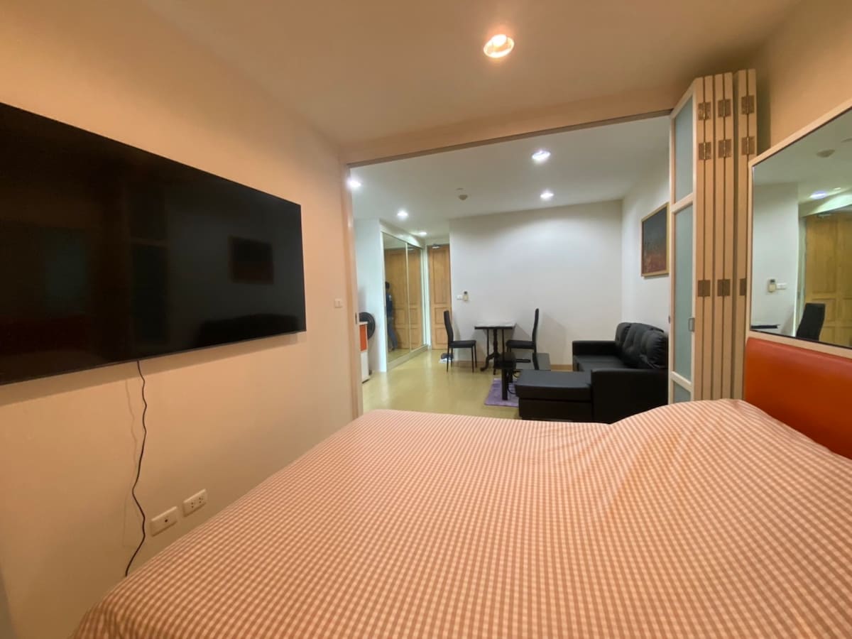 Our spacious (68 sq.m.) room is newly renovated and comes with all the amenities you need. Situated in the heart of Bangkok amidst upscale hotels, it offers easy access to Thailand's top attractions. Just a short 6 mins walk from Sapan Taksin SkyTrain Station, 1 min walk to convenient store, 4 mins walk to department store, our location is incredibly convenient, with renowned dining options, the bustling business district, and popular tourist spots nearby. *There is NO pool and gym for guest*