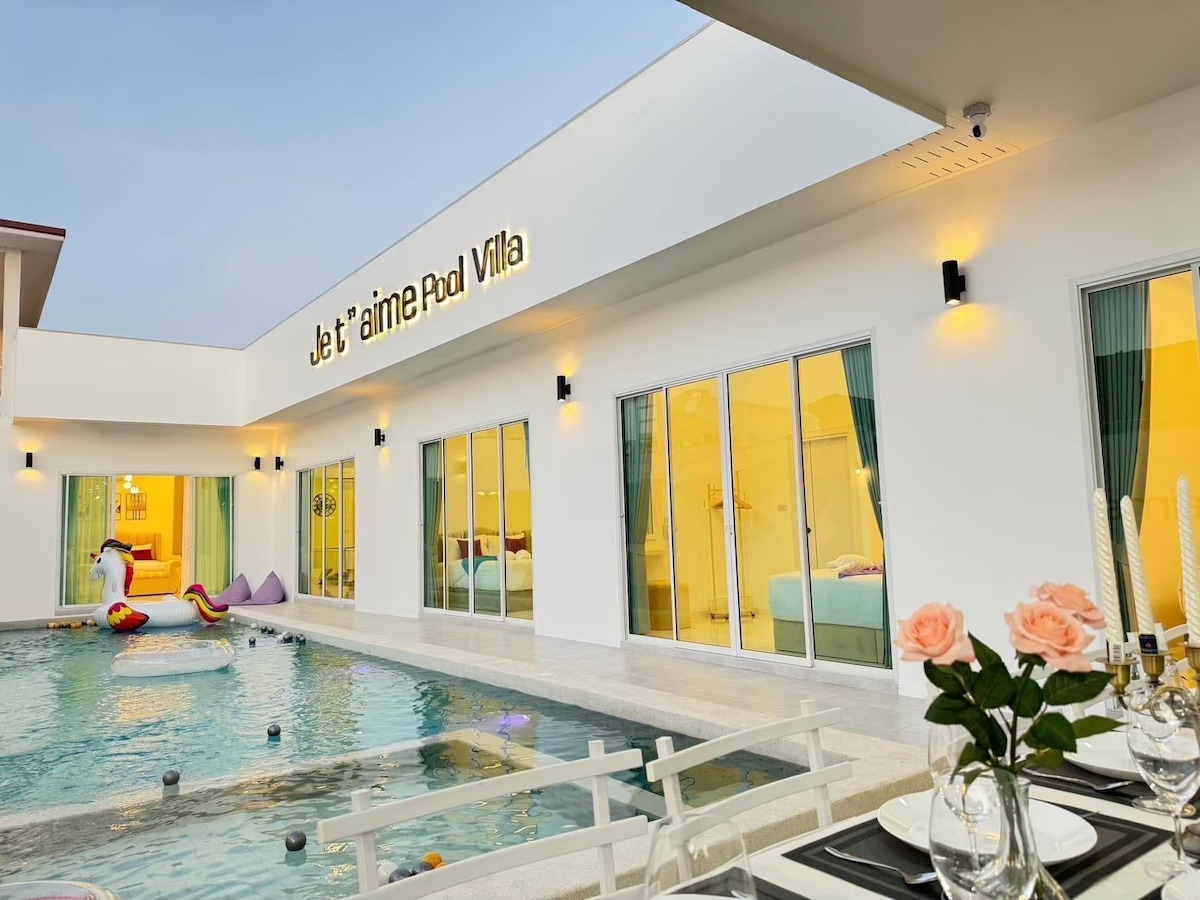 房源概况 这栋独栋泳池别墅位于芭提雅中天区域,设有5卧6卫,每间卧室均配备独立卫生间,智能马桶,保障客人私密性。别墅全新装修,空间宽敞明亮,配有独立庭院与私人泳池,可舒适容纳 10-12人,非常适合家庭、朋友聚会或团体度假。 地理位置 别墅距离中天海滩仅100米,步行即可到达。小区周边 300 米内拥有餐厅、咖啡店、药店和便利店,生活便利。驾车可快速抵达主要景点: • 3分钟:中天夜市 • 10分钟:Central 百货、唐人街、Terminal 21、79 成人秀 • 10分钟:步行街、格兰岛码头、美人鱼网红餐厅 无论是海滩、购物还是夜生活,都能轻松安排。 房屋亮点 • 5间卧室均为独立套房,配有智能窗帘 • 6个卫生间,多人入住也不拥挤 • 私人泳池与花园,定期维护 • 超大客厅和餐厅,适合聚餐和休闲 • 全屋空调、高速 Wi-Fi • 社区安静、安全,适合家庭入住 管家服务 提供 24小时管家服务,协助入住指引、路线导航 可选增值服务 提供曼谷/芭提雅接送机、包车服务、租车、包船出海、景点及秀场门票预订、私厨上门、上门烧烤、翻译等服务,让假期更加便利和轻松。