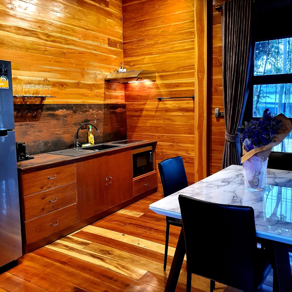 Naša mala ekološka vila sa bazenom smeštena je u tihoj dolini, odmah pored Kantri kluba Puket, jednog od najlepših golf terena u Puketu. Izgrađena 2021. godine, vila ima dobro održavan bazen sa morskom vodom, veliki natkriveni spoljni prostor sa roštiljem i odvojenu salu, zasebna spavaća soba sa susednim kupatilom i natkrivenim spoljnim tušem, malom kuhinjom kao i velikim kaučem od bambusa koji vas poziva da se opustite... Vila je idealna za samce ili parove.