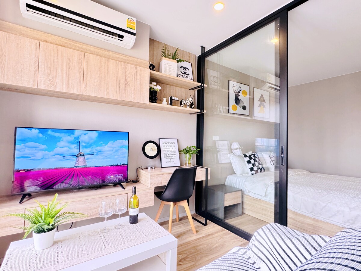 房源亮点 舒适空间:1卧1卫(沙发/休息区/餐桌),轻松入住2位成人。 黄金地段 交通枢纽 1.距BTS On Nut站仅300米(步行3-5分钟),直通全城核心区: 2.1站达暹罗商圈(Siam Paragon/MBK/CentralWorld/Siam Square) 直达NaNa广场、T21购物中心、四面佛, EM贵妇商圈,gate way商场, Ekkamai 汽车中转站,central Embassy 3.BTS换乘MRT,快速抵达火车夜市 4.自驾便捷:上高速口200米,下高速口(On Nut出口)500米 生活配套(步行即达) 餐饮:楼下7-11便利店、咖啡厅、Best Beef自助餐厅(紧邻房源) 商超:Lotus超市(300米)、Big C超市(500米) 娱乐:丰富餐饮与夜生活场所环绕 便捷交通、全能生活配套于一体,满足商务出行与休闲度假需求,是探索曼谷的理想据点!。