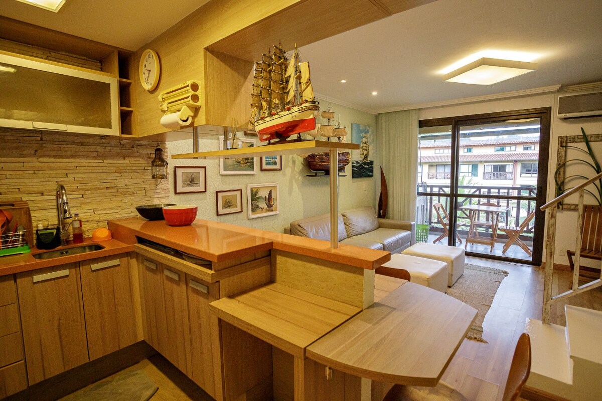 Apartamento bem equipado em condomínio residencial super tranquilo. O condomínio possui estrutura física de resort com piscinas, parquinho, quadras de tênis/futebol, restaurante, uma pequena praia ideal para caiaque e similares e a marina como opção para passeios. -Acesso a uma vaga de garagem. -Check in/out flexíveis sob consulta. -Conheça os detalhes do apartamento logo abaixo: