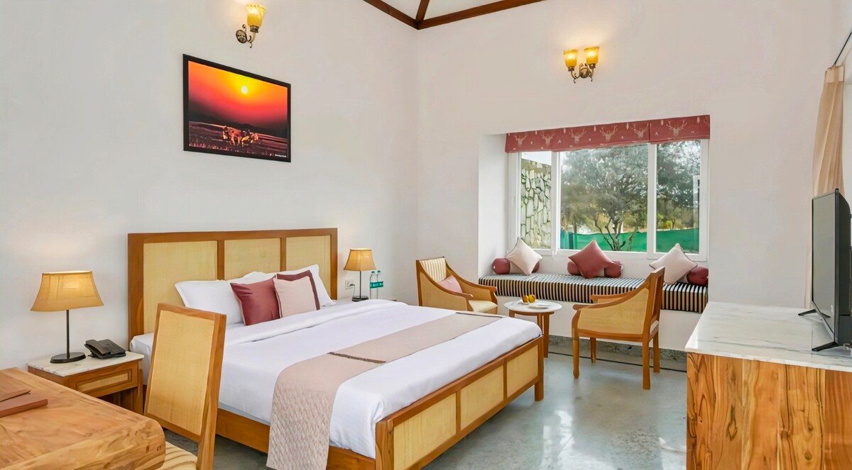 Reconnect with nature at this unforgettable escape. Jawai Retreat is your window to the wild. Perched on the edge of Jawai’s rocky landscape, this cozy stay features a private balcony with sweeping views of leopard territory. Experience the thrill of nature with comfort and tranquility, just minutes from safari trails and village life.