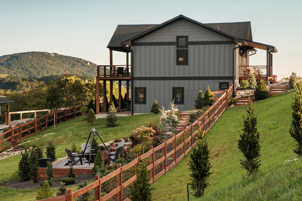 Grejston brvnara na Kou Kriku je potpuno nova luksuzna planinska brvnara sa žubornim potokom i hidromasažnom kadom za 6 osoba sa zadivljujućim pogledom na okolne planine! 15 minuta od prodavnica i restorana u centru Boonea, ova rustična elegantna brvnara nudi udobnost sa 5 zvjezdica i opuštanje iznutra i izvana! Skijajte zimi, pecajte 3 vrste pastrmki, tubing i kupanje u našem potoku, ljuljajte se iznad potoka i opustite se pored ognjišta. Uživajte u mirnom blaženstvu gledajući krave i konje kako pasu naše imanje „Mini Ireland”!