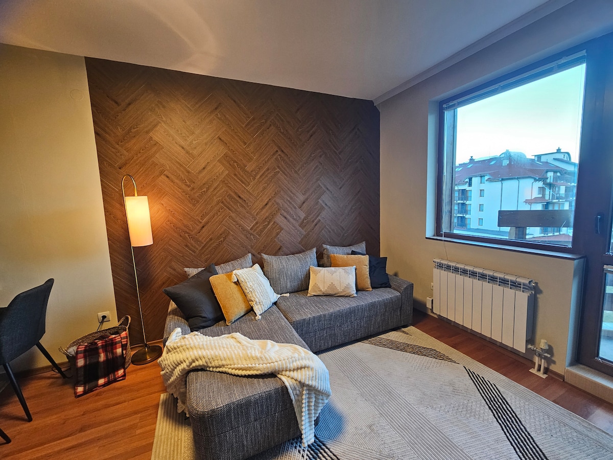 Udoban stan se nalazi na početku parka Pirin, pored skijališta ! Spuštanje sa planinskog skijanja pravo do kuće i do gondole. 8 minuta hoda do gondole. Opustite se u zatvorenom bazenu i spa centru(nije dostupno) Sedite u baru ,restoranu, predvorju sa besplatnim Wi-Fi-jem Šokantan pogled na planine Pirin, Rodope , Rilu i dolinu. Kamin, neograničen Wi-Fi 350 mb/s. Bučan noćni život za 15 minuta hoda. Ako volite tišinu i prirodu, ovo je definitivno vaš smeštaj. Parking je besplatan.