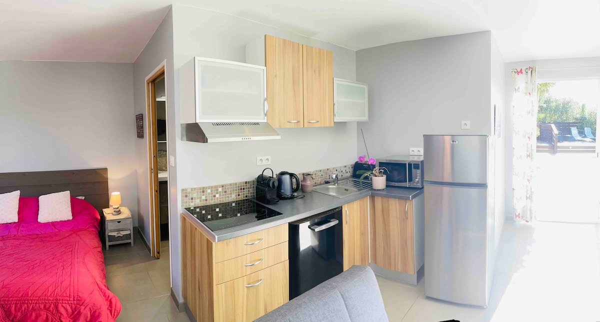 T2 u prizemlju, nalazi se na severu Bastije. 2 minuta hoda od plaže koja nudi veslanje na dasci, kajake... od ovog mjesta možete posjetiti našu prelijepu Cap Corse sa svojom malom navigacijom, carinskom stazom koja nudi nezaboravne vidikovce, njegove divlje uvale ili prelepe plaže, grad Bastiju i njegovo bogato nasleđe, kao i svu njegovu zabavu, luku Sent Florent ...