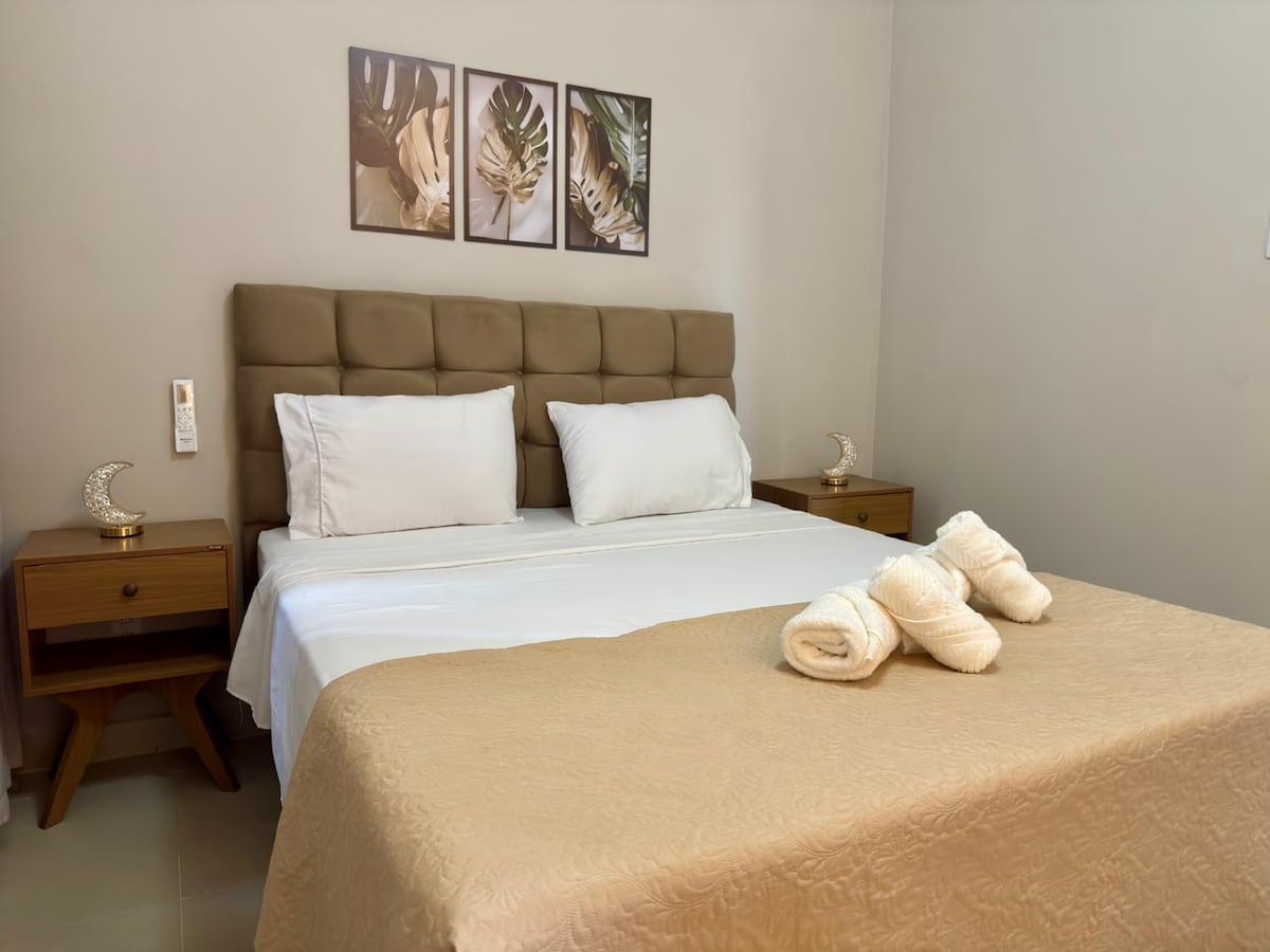 Projetamos cada detalhe para o seu bem-estar: Cozinha Completa: Geladeira Micro-ondas Todos os utensílios, talheres e panelas necessários para preparar suas refeições. Filtro de Água (Praticidade e saúde garantidas!) Conforto Garantido: Cama confortável e de alta qualidade. Toalhas e roupas de cama limpas e macias. TV para seus momentos de descanso. Ar-condicionado. Bem localizado, ideal para executivos, participantes da COP30 e viajantes.