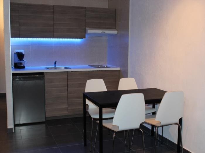 Brand new aparthotel building with fully equipped studios. Spacious room with double bed, TV and free fiber internet WiFi. Modern table with 2 stools, small kitchenette with a ceramic hob, sink, microwave and coffee maker. Lovely terrace on the top floor for common use. License number - HB-004584