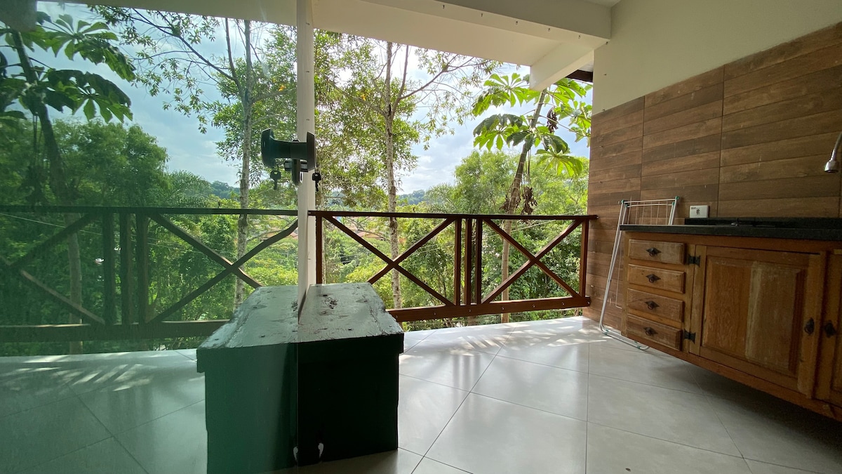 7 minuta hoda od plaže Camburizinho/Camburi Naša kuća je vrlo ekskluzivna, praktično cijela kuća ima pogled na more (bez kupatila), spavaću sobu sa bračnim krevetom, plafonski ventilator i vrata na balkon sa pogledom na more. Mezzanino sa dvostrukim dušekom i staklenim zidom sa prozorom i pogledom na more! ventilator Vrlo dobro provetrena kuća, tiha i privatna! Kuhinja sa priborom, udoban dnevni boravak sa kaučem na razvlačenje i velikim prozorima sa pogledom!