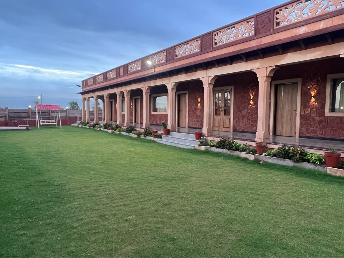 Nestled in Jodhpur, Krishna Villa is a serene escape blending modern aesthetics with cultural charm. Inspired by Krishna and Vrindavan, it features a lush terrace garden and a tranquil fountain, offering the perfect setting for family and friends to relax and reconnect. Pet-friendly & welcoming to furry companions, it promotes a harmonious, animal-friendly environment. In line with its spiritual ethos, Krishna Villa allows only vegetarian food, fostering a peaceful and compassionate atmosphere.