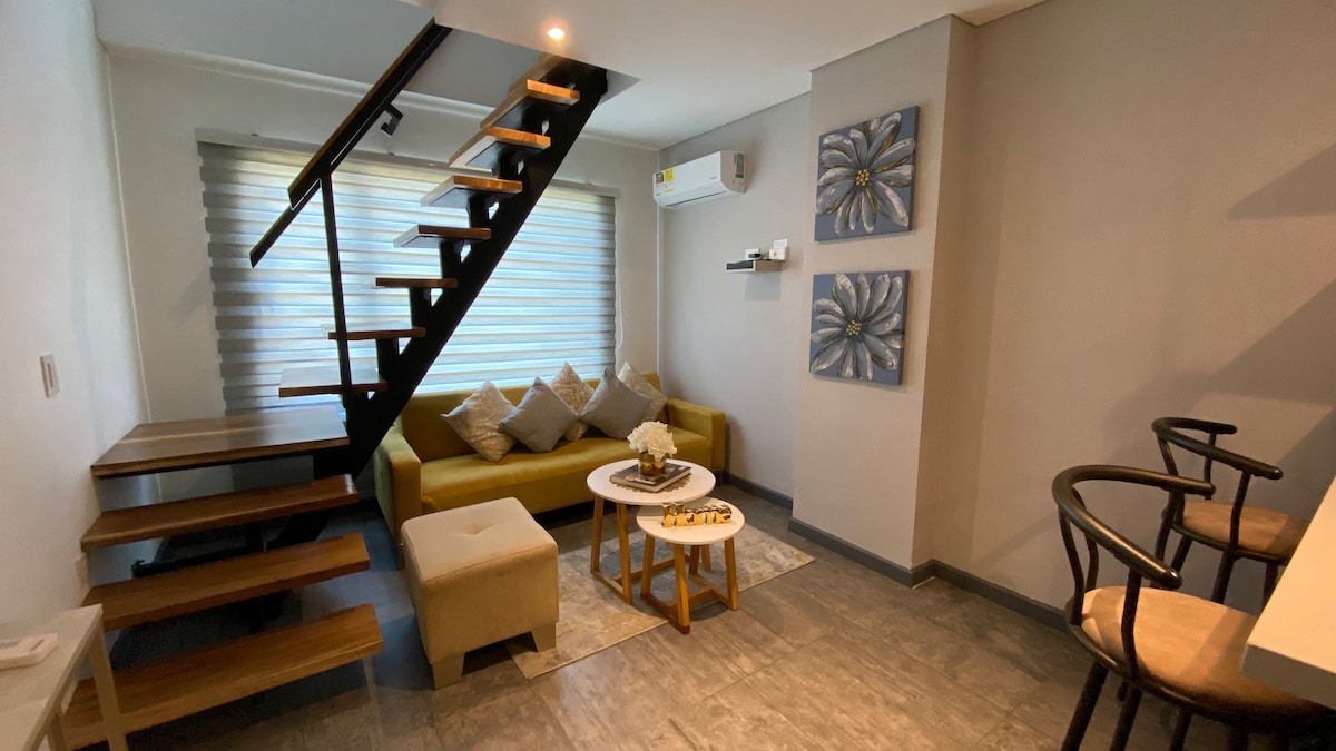 Uživajte u nezaboravnom iskustvu u ovom modernom potkrovlju na 9. spratu GZ tornja: * Fleksibilni uslovi dolaska i odlaska *Wi-Fi 900 Mbps *Jedan blok od Iberoameričke klinike i tri bloka od tržnog centra Viva. *1 spavaća soba sa francuskim krevetom i klima-uređajem. *Dnevni boravak sa kaučem na razvlačenje i klima-uređajem. * Mašina za pranje/sušenje veša *Teretana Smartfit u blizini (uz naknadu). *Besplatan privatni parking * Idealna lokacija: Blizu tržnih centara, velikih klinika i turističkih područja.