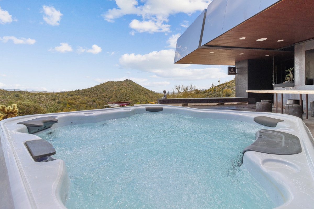 Vrhunsko utočište u pustinji | Bazen, hidromasažna kada + ognjište