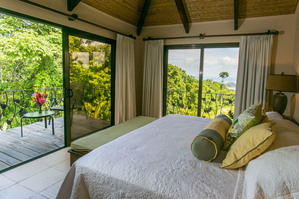 Talk about Location, Location, Location! Surfside Villa Dominicalito is uniquely located on a lush terraced hillside with a breathtaking 180 degree white wash view where you can watch the birds and monkeys all day. Surfside Villa Dominicalito is located inside the gated community of Canto del Mar (Song of the Sea) which many regard as the “best location in town.” It is a 10-minute walk to Playa Dominicalito and minutes from shopping, restaurants, and tourist attractions.