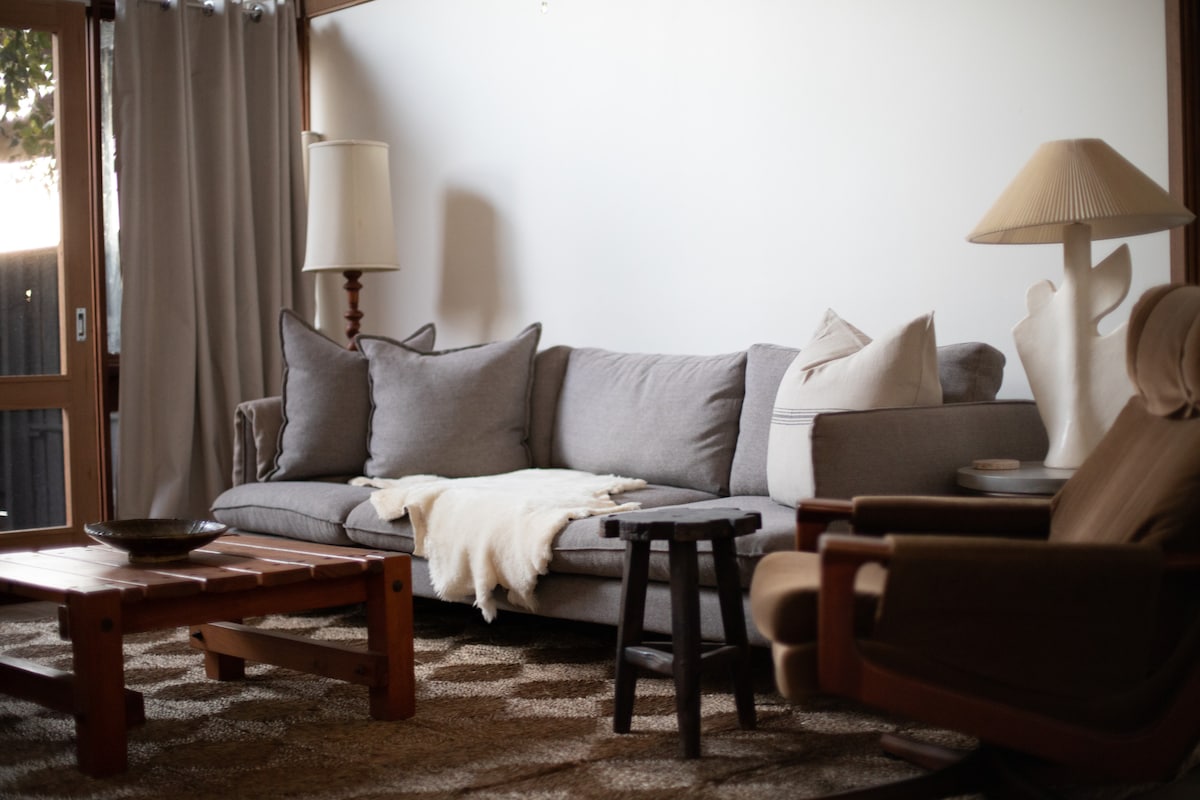 Idite na plažu ili u centar grada na 4 minuta vožnje od ovog mirnog, udobnog studija. Poslušajte kako ptice pjevaju dok se budite u korpi za doručak koja vam je na raspolaganju po dolasku. Lokalni proizvodi uključuju Adeliju muesli, kiselo testo, LardAss puter, gaziranu vodu, mleko i džem. Opustite se popodne u udobnom dnevnom boravku ili na otvorenom prostoru sa lokalnim vinom koje ste pokupili tokom avantura. U hladnijim večerima uživajte u toplini svog spoljašnjeg kamina.