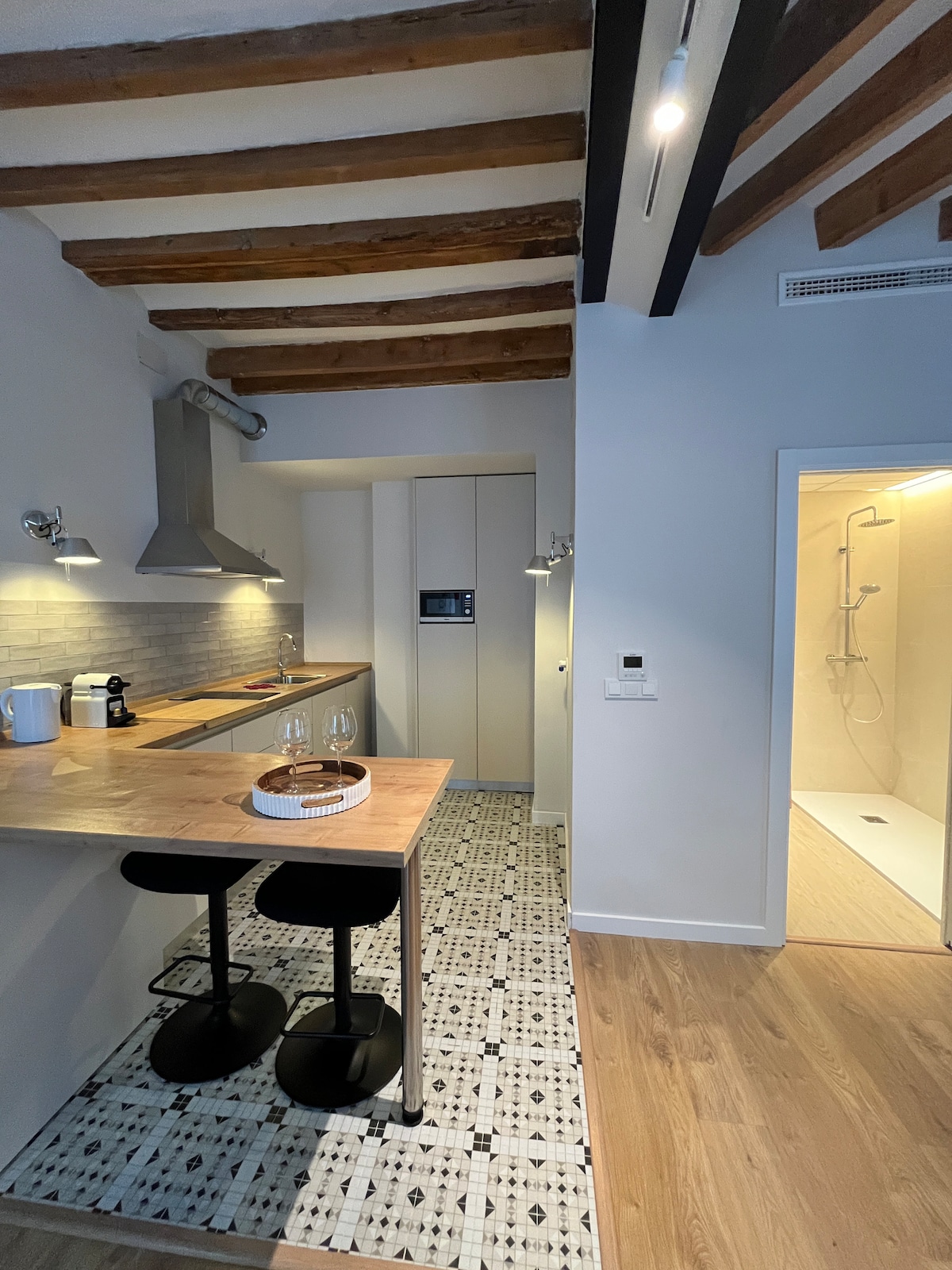 Ovo prelijepo, prostrano i svijetlo potkrovlje od 110 m2 nalazi se u srcu istorijskog centra Alikantea s pogledom na stari grad. Renovirali smo i dizajnirali ovaj smeštaj poštujući tradicionalne načine gradnje iz tog vremena, sa krečnjakom i drvenim gredama, dok istovremeno nudimo sve pogodnosti modernog apartmana i malo luksuza. Plaža je udaljena 5 minuta (350 m) hoda, a brojni obližnji barovi i restorani vas pozivaju da uživate u tipičnoj mediteranskoj atmosferi starog grada.