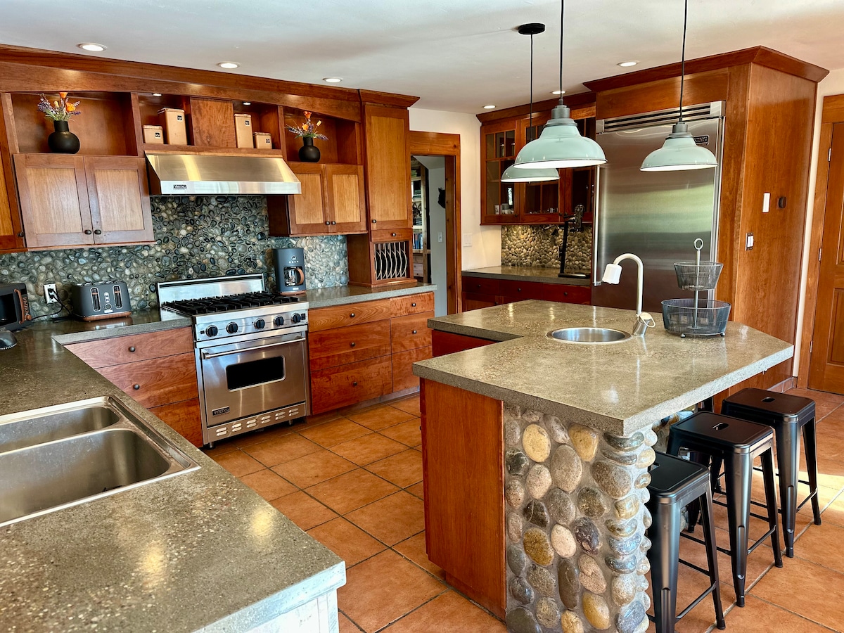 Eho Veli Retreat, smješten među veličanstvenim hrastovima u planinama šarmantnog Oukhersta. Ova svijetla i udobna kuća sa 3 spavaće sobe i 2 kupatila savršen je smještaj za one koji traže opuštajući i zabavan odmor. Nalazi se na 30 minuta od Južne kapije Josemitija, šume sekvoja Mariposa Grov, kazina Čukčanzi i na 10 minuta od jezera Bas. Doživite pogled na planinsku dolinu koji oduzima dah i mirno okruženje. •Hidromasažna kada •Ognjište • PROSTORIJA ZA IGRE •Roštilj Zabranjeno je pušenje.