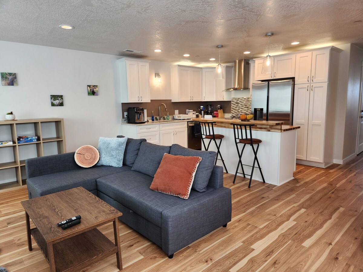 New building, appliances, and furniture. Beautiful, modern, spacious. This special home is close to everything, making it easy to plan your visit. Located in town, just minutes from the beach and nearby redwood trails. 2 bedroom and 2.5 baths, with sleeping arrangements for up to 7 people (prices change with number of guests). Full kitchen with super automatic espresso machine. Washer and dryer in the house. Fully private space; 1 of 2 in the building.