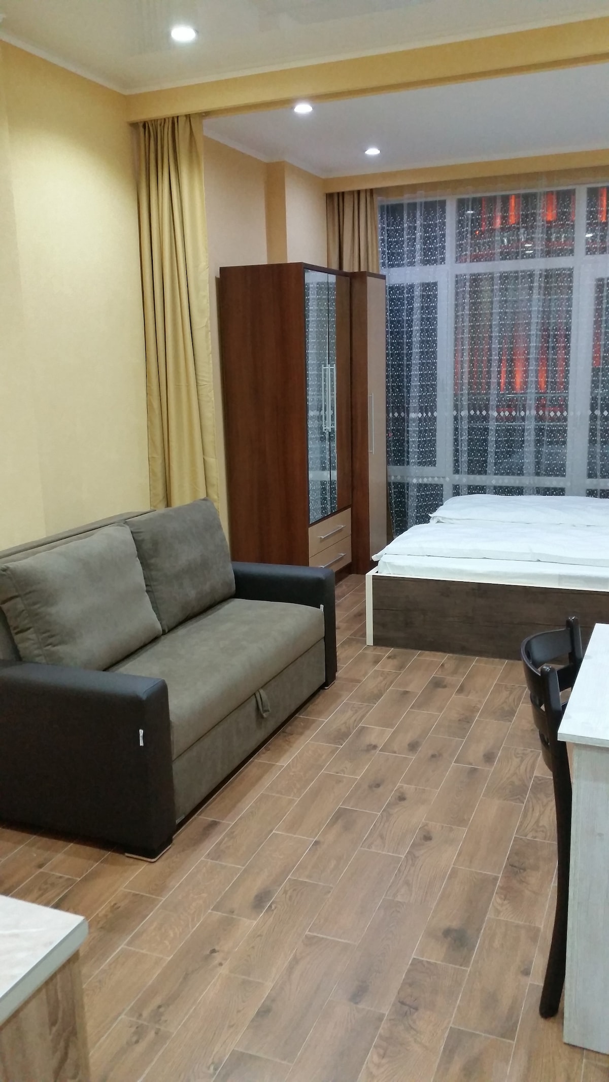 • View of the black sea from the balcony. • 5min to the beach-just across the road. • Free towels and bed-sheets. • Kitchen with all the equipements. • One double-bed (180/200) extensible sofa(110/180) • Sea-view balcony equipped with chairs and desk. • Plasmatic TV with many cannals. • Free wifi. • 5 elevators in each floor • 24/7 security and video-control system. • 24 hour reception with careful staff. • Aquaprak in front of the apartament.