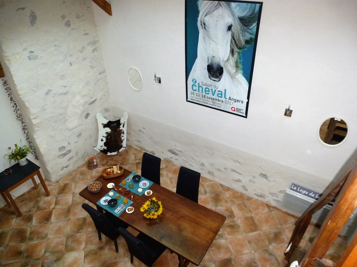 Nalazi se u srcu netaknute prirode, između Loare i Lueta, i samo 15 minuta od srca Angersa, Laure Gasnier i njena porodica vam žele dobrodošlicu u La Petite Boire. Tipična kuća Anžu, naša kuća je stara farma Čanvera * izgrađena sredinom 19. vijeka od drveta, sedla i škriljevca. Naša nezavisna seoska kućica može da ugosti do 2 osobe (i 1 dete do 2 godine). Čajna kuhinja, privatno kupatilo i doručak su uključeni. Nemojte više čekati da dođete i napunite baterije!