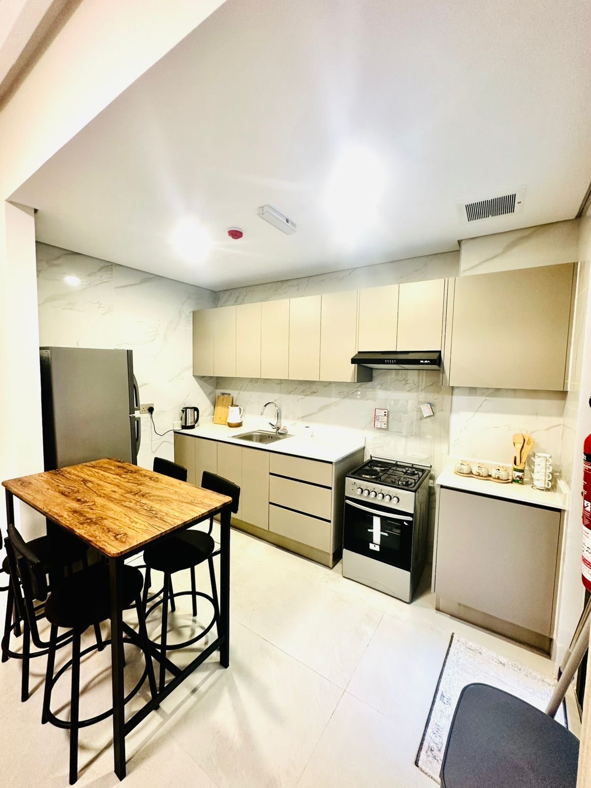 Dobro došli u ovaj elegantan i moderan stan u srcu Muskata! Uživajte u potpuno namještenom prostoru sa elegantnim dekorom, udobnim krevetom, brzim Wi-Fi mrežom i pametnim televizorom za zabavu. Kuhinja je potpuno opremljena za kuvanje, a s balkona se pruža opuštajući pogled. Stan se nalazi u blizini restorana, kafića i tržnih centara, što ga čini idealnim boravkom i za kratke i za duge posjete.