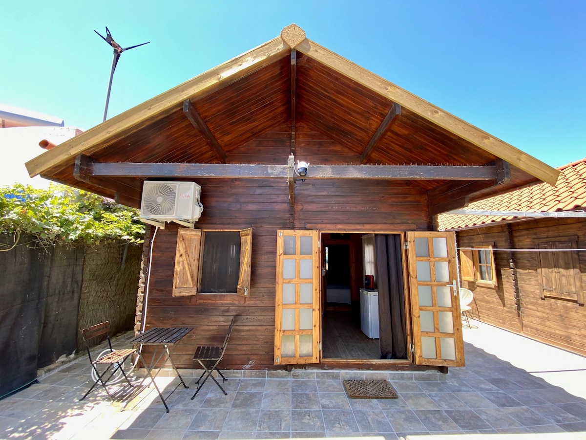 Prelep bungalov sa tremom od 15 metara i parkingom, koji se nalazi u privatnoj i tihoj finci. 3 minuta od plaže i barskog prostora. veoma lep i udoban. dozvoljava da ugosti 4 osobe u bračnom krevetu i udoban kauč za dve osobe