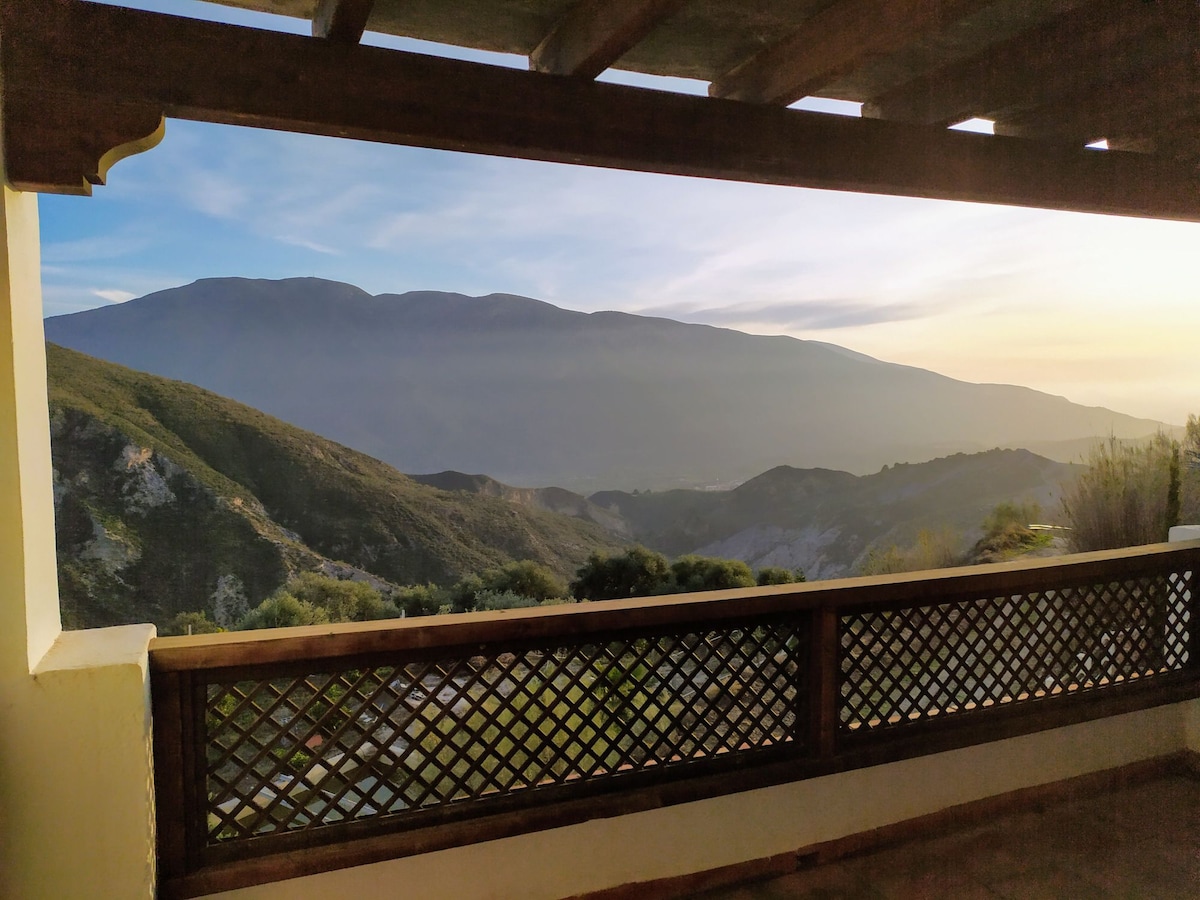 Welcome to our peaceful organic olive farm, where you can unwind and enjoy a true experience in nature. Our property is located in the middle of the evergreen Alpujarra, the fertile southern slopes between Spain´s largest national park Sierra Nevada (just over an hour´s drive to the ski resorts) and the coast (40 minutes). La Alpujarra is blessed with beautiful hiking walks with wild flowers, forests, rivers, waterfalls, springs and the medieval Moorish irrigation canals known as "acequias".