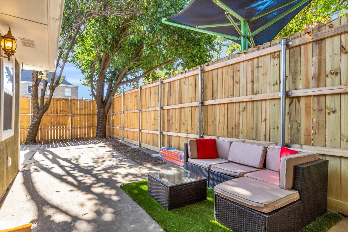 Garsonjera u centru Dalasa | Bračni krevet (širine 180–200 cm), privatno dvorište
