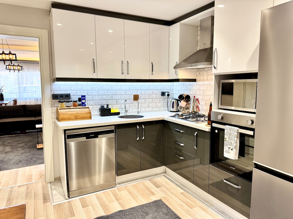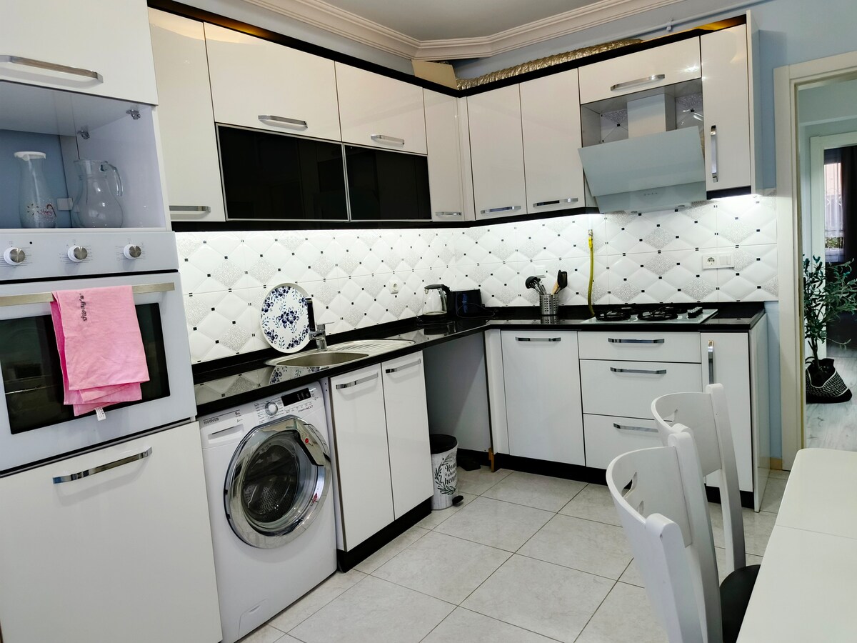 You are welcome to stay in a new cozy, tidy, and fully renovated home in the quiet and friendly neighborhood of Konak, Izmir. The home has everything you need for a relaxed and comfortable stay. The home is done in grey-white-brown shades with sweet little decors. It is very close to the city center, and the metro station is just within walking distance.