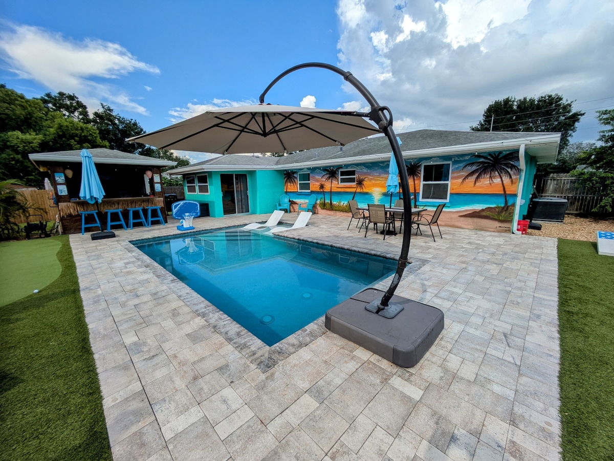 Backyard Oasis, Heated Pool Tiki Bar Near IMG