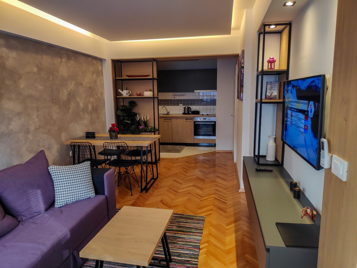 Perfect Location. Beautiful Design. New Apartment. FREE Parking included in the price. This is a new, beautifully designed apartment; it's a great place to spend your holiday. Placed in the heart of Ohrid around us is basically everything as we described in our "neighbourhood" section. Lake Ohrid is about 100m, and the nearest city beach is a 10-minute walk. The central bus station is situated a 10-minute drive, and Ohrid International Airport is reachable within 15 minutes by car.