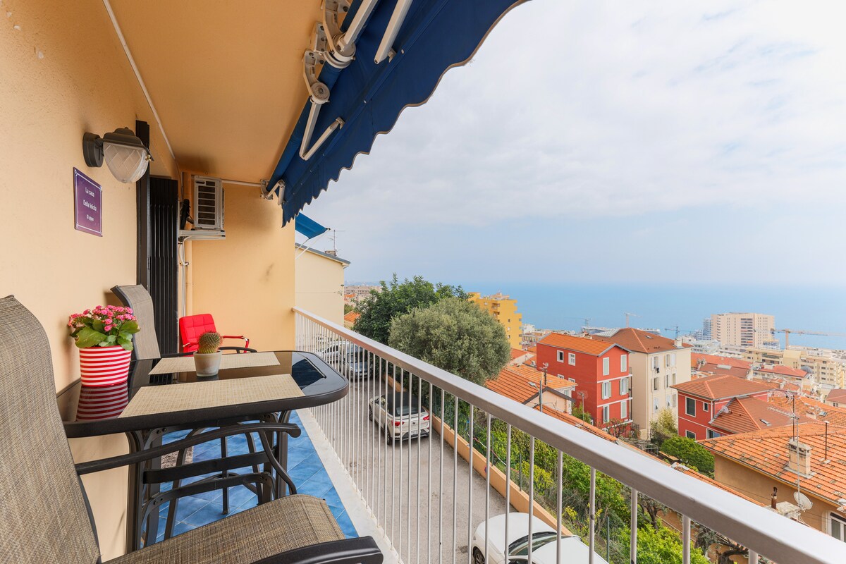 Tajni dragulj smješten na najvišoj zgradi Starog grada NA STRMOM BRDU BEZ LIFTA nekoliko minuta od Cours Saleya, Place Massena i mora. Svetlo i puno svetla. Veliki, suncem obasjan balkon sa najneverovatnijim pogledom na more i grad. Savršeno kao romantično skrovište ili kreativno utočište, ili jednostavno za istraživanje Nice i okolnih područja. NEMOJTE rezervisati ako imate problema s pokretljivošću ili zdravstvenim problemima ili niste u dobroj kondiciji!!