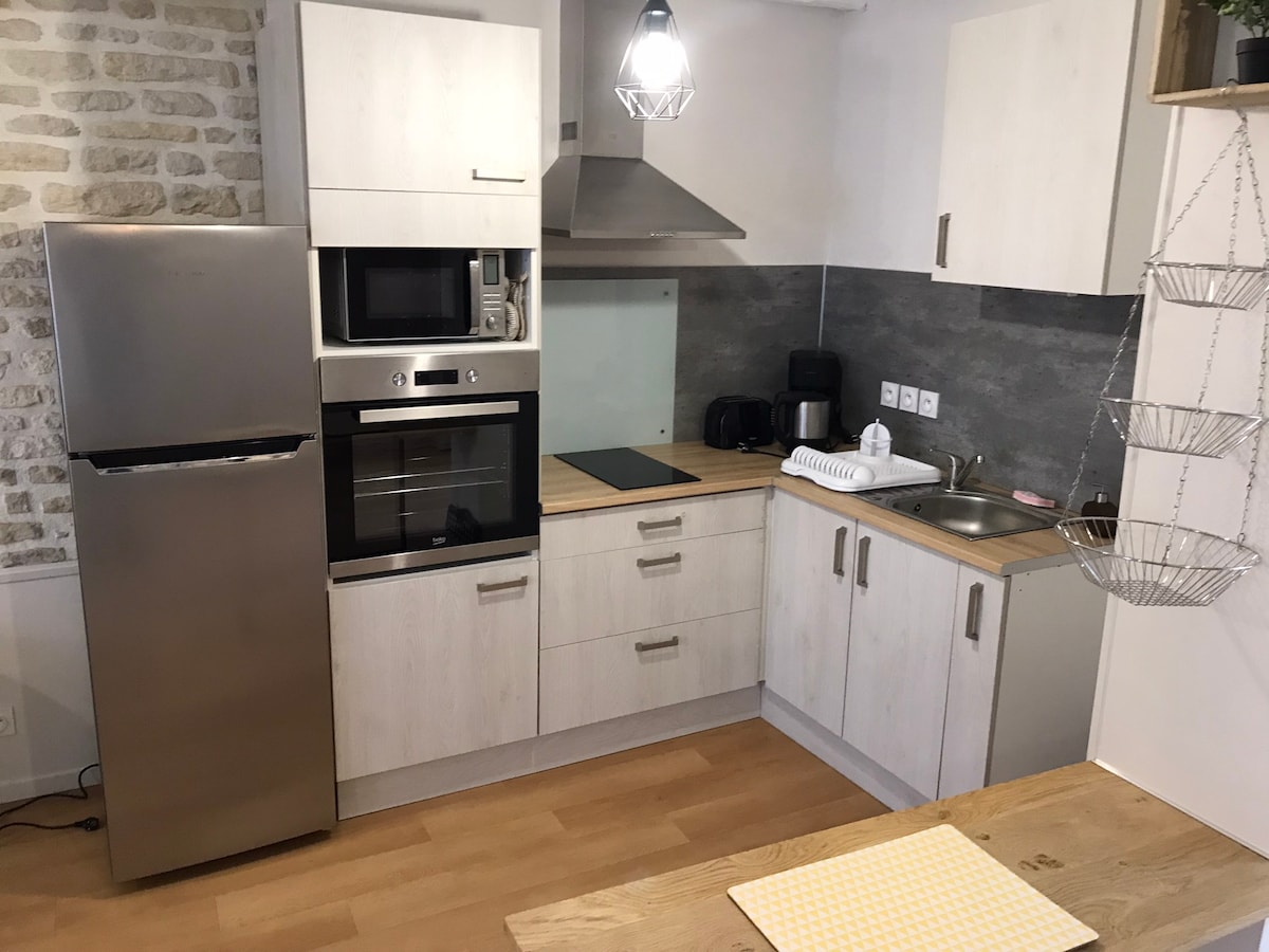 Čekamo da se opustite u ovom mirnom i elegantnom smeštaju u kojem se ne puši. Možete da odsednete sa dva gosta; imaćete spavaću sobu sa krevetom , kuhinjom , dnevnom sobom i kupatilom. Samouslužni ulazak - Crazy du Fou u 1h10 -Futuroskop udaljen 50 minuta - La Rošel u 1h -Marais Poitevin udaljen 30 minuta -Parthenay (julski festival utakmica) udaljen 30 minuta Za profesionalce - Maaf udaljeni 13 minuta -Maïf na 13 minuta -Macif na 25 minuta - Chauray aktivnosti udaljene 15 minuta