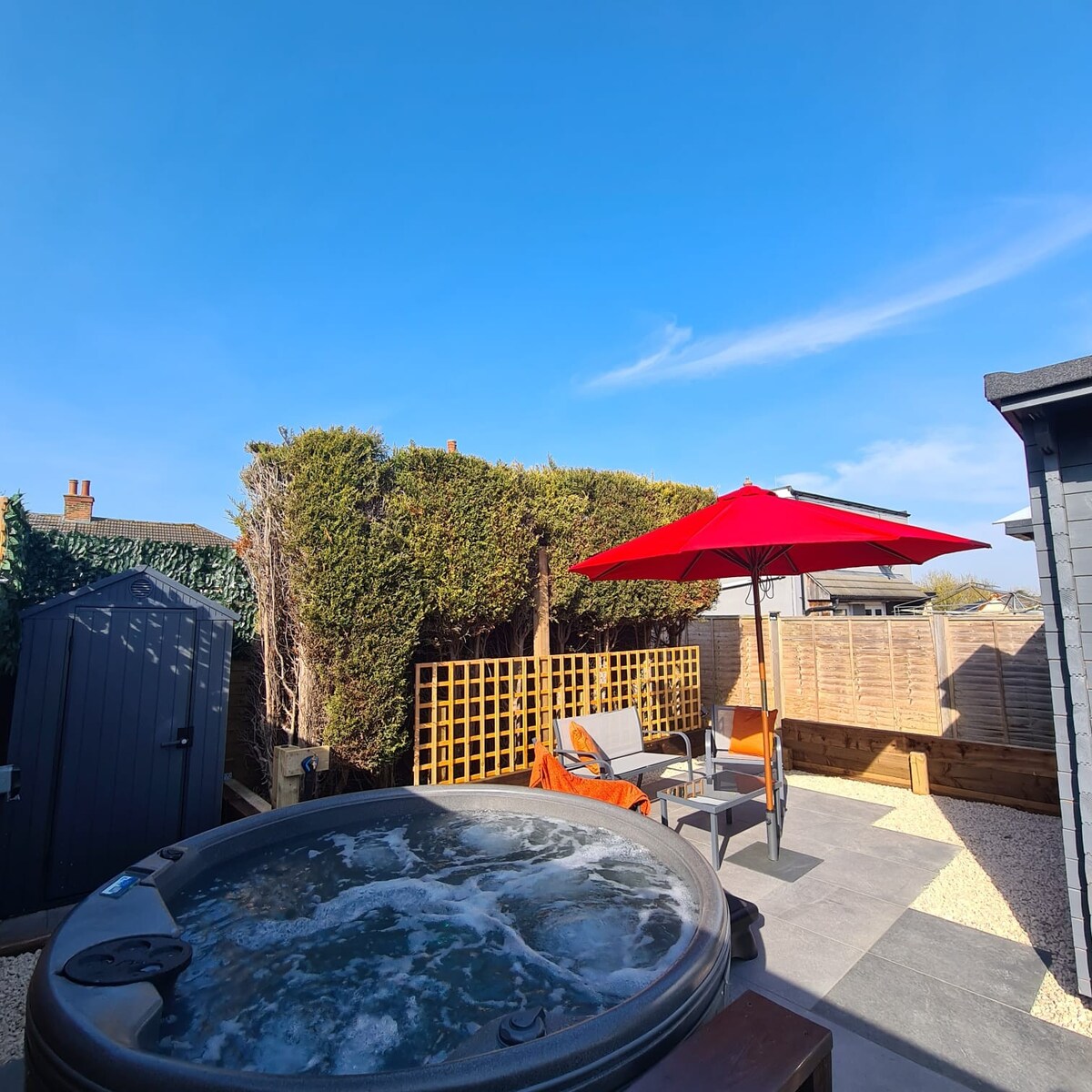 Santina je savršen odmor od vreve i vreve života! Smještena u polju iza naše seoske kuće, pastirska koliba je okružena poljoprivrednim zemljištem. Gosti mogu da uživaju u opuštanju u hidromasažnoj kadi (** pogledajte „detalje koje treba napomenuti”) ili posmatranju zvijezda pored ognjišta pod nebom koje ne prekidaju ulične lampe prije nego što se povuku u udobnost kolibe koja se zagrijava pomoću gorionika. Mnogo lijepih lokalnih šetnji. Jednostavan pristup A14 i A1 i savršena lokacija za istraživanje lokalnih sela.