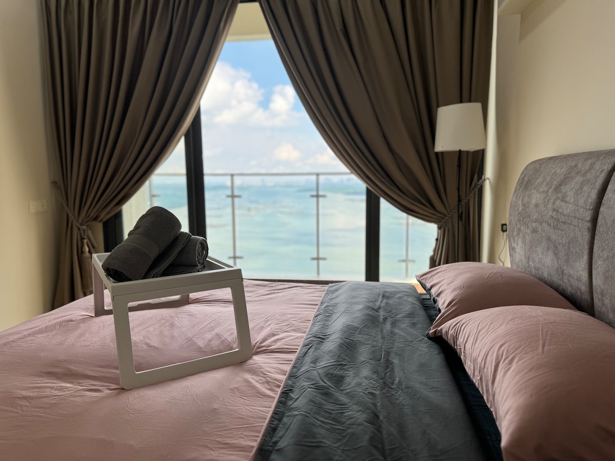 Stylish Seaview Stay @ Danga Bay, JB 2 bedrooms, both equipped with ultra-HD projectors and surround sound – a true private cinema. Master bedroom comes with bathtub and sea view. Cozy living room with fireplace and open kitchen. Facilities include swimming pool, gym and garden. Walking distance to mamak stalls, AEON, salons and shops. Only 10 mins to CIQ/Singapore, 15 mins to KSL and Paradigm Mall.