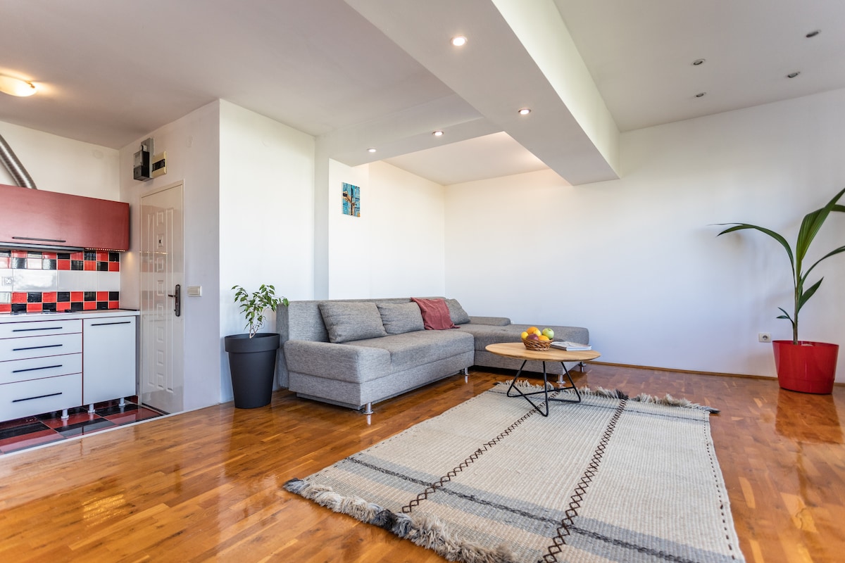 Udoban i moderan stan, kompletno renoviran, u centru starog grada - samo 7 minuta hoda do Trga Republike i ulice Skadarlija Bohemian. Vrlo mirna pozicija - zgrada je u drugoj liniji od glavne ulice u dvorištu. Odvojite udobnu spavaću sobu u potkrovlju. Prostrana dnevna soba i trpezarija. Dobro opremljena kuhinja. Dobro došli! :)