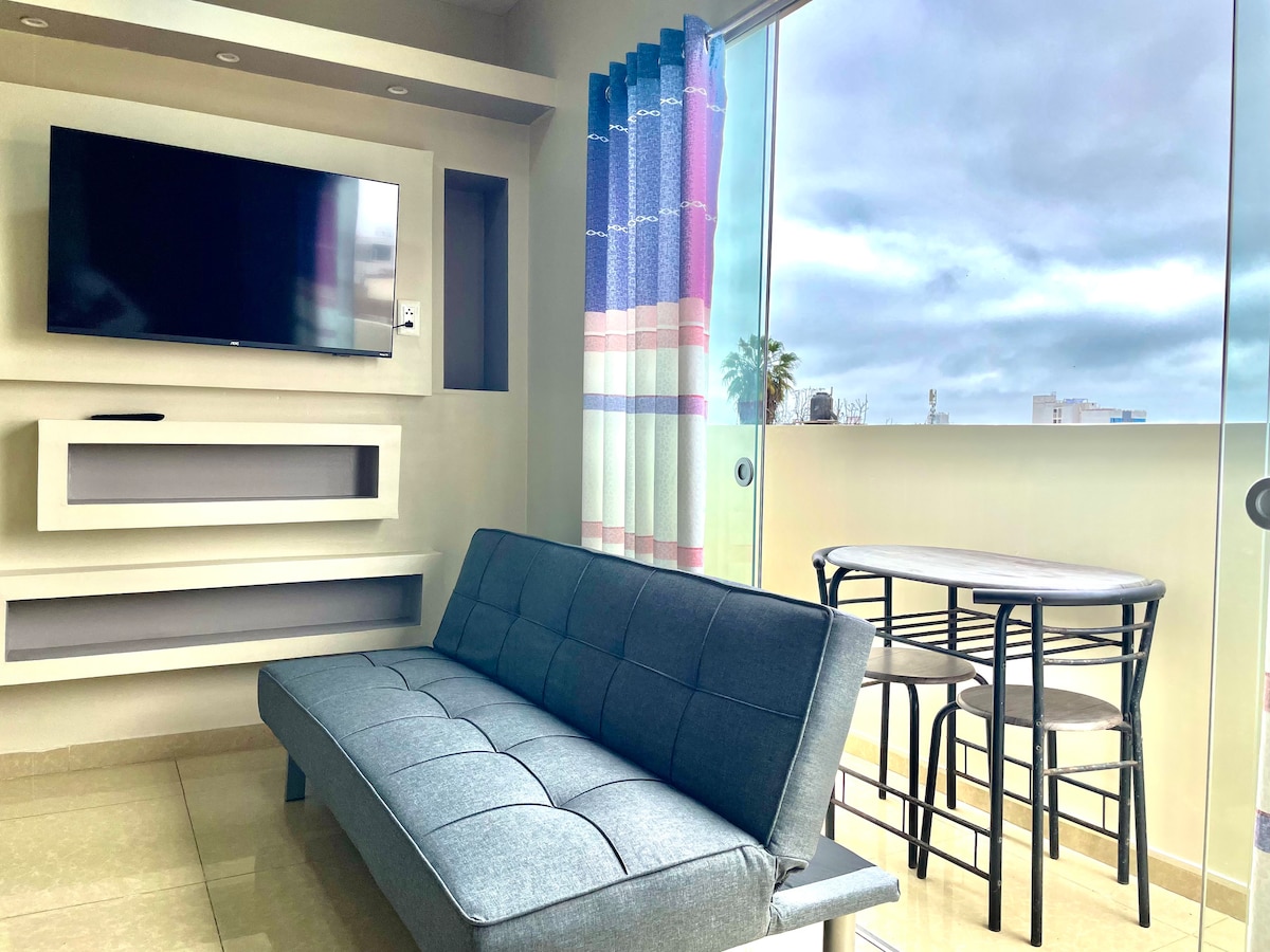 Opustite se u ovom jedinstvenom i mirnom smeštaju za kratak odmor. Provedite nevjerovatnih nekoliko dana sa predivnim pogledom na okean u udobnom stanu u ekskluzivnom području Mirafloresa. Naći ćete se veoma blizu svetionika Miraflores, Larkomara, francuskog Kiss-a i raznih turističkih mesta. Potpuno opremljen da vam pruži odličan boravak, idealan za parove.