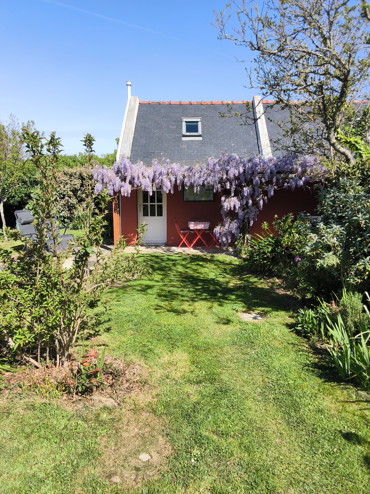 Naša mala kuća je u srcu živog sela u Bel Ajlu, zahvaljujući svom konjičkom centru. Smješten 200 metara od prelijepe plaže i divljih uvala, moguće je pješačiti obalnim stazama od kuće. Udobno, rustikalno i moderno, toplo je, ovdje ćete se osjećati kao kod kuće. Terasa, okrenuta ka jugu, sastavni je deo kuće. Namještaj je napravio Aksel, sa drvetom Bel Ile.