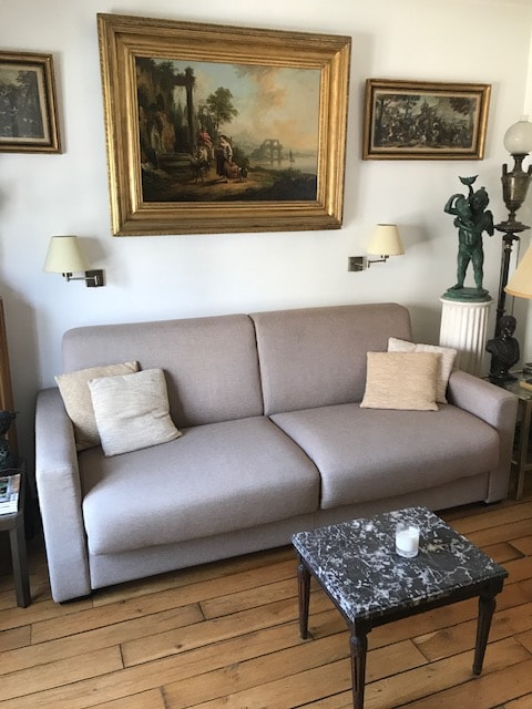 Smješten na tipičnom pariškom trgu, ovaj apartman s 1 spavaćom sobom od 28 kvadratnih metara može da primi 2 osobe sa maksimalnom udobnošću (veliki krevet u zasebnoj spavaćoj sobi) i do 4 osobe (2 u udobnom kauču na razvlačenje). Opremljena kuhinja i potpuno novo kupatilo učiniće vaš boravak savršenim! 15 minuta vožnje do centra Pariza! Imajte na umu da ako planirate da koristite sobu i kauč na razvlačenje za samo 2 osobe, morate da rezervišete za 3 osobe.
