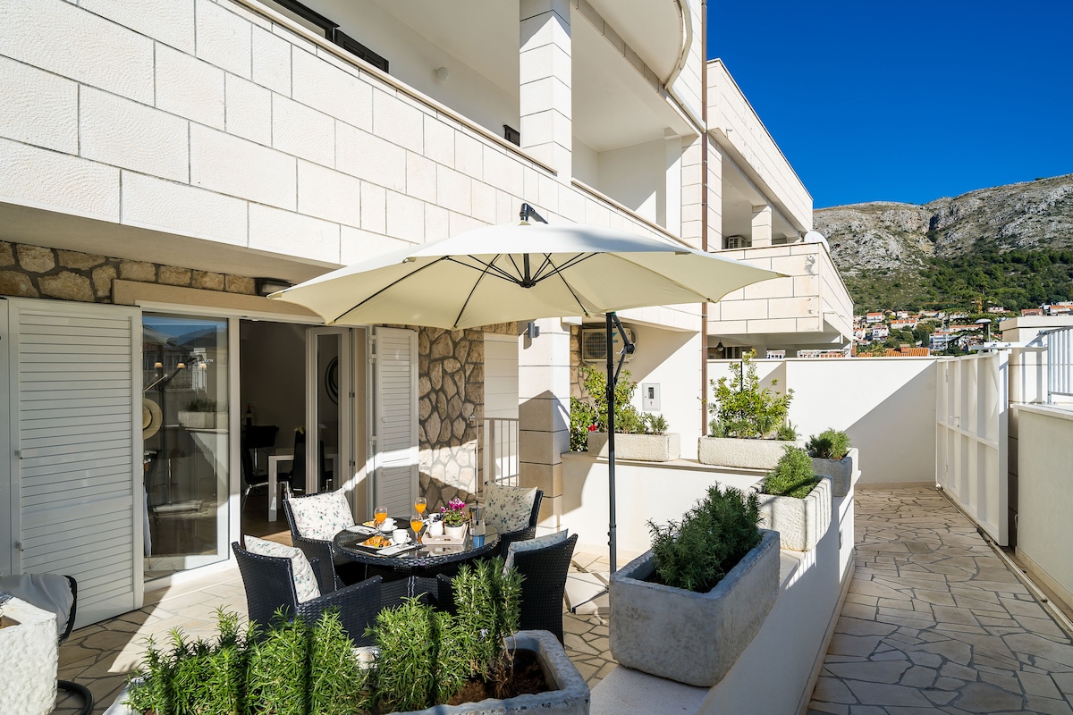 Apartman se nalazi u Dubrovniku, na samo 20 minuta hoda od Starog grada, 25 minuta hoda od zaliva Lapad i 10 minuta hoda od najbliže plaže. Klimatizovani smještaj ima privatni parking i besplatan Wi-Fi. Terasa je savršena za doručak ili večeru na otvorenom, dok se tokom dana možete opustiti u ljuljašci. Udaljenost od aerodroma u Dubrovniku je 30 minuta automobilom bez saobraćaja.
