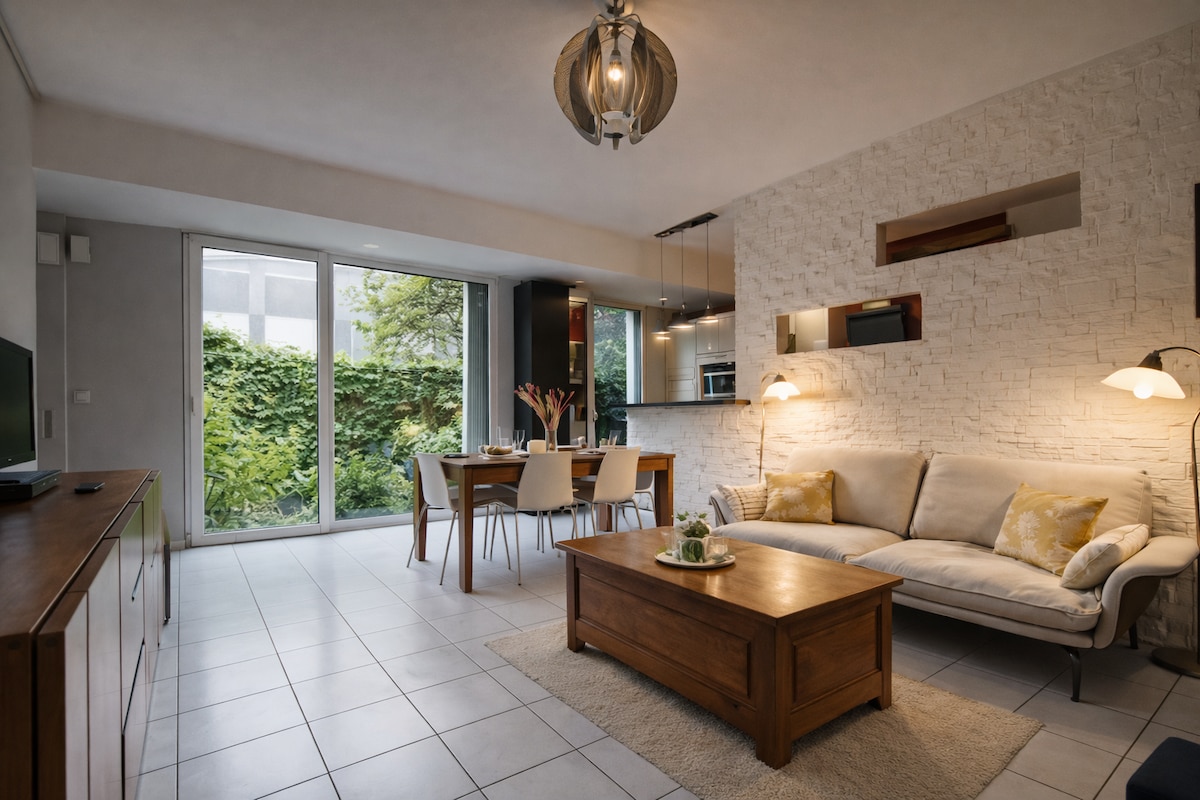 Gradska kuća, 48 m2 za 2 osobe, moguće 4. Nalazi se u rezu, okrug Hôtel de Ville U blizini su prevoz (aerodrom, tramvaj, autobus, bicloo). 10 minuta od Trentemoulta Renoviran, nudi vam dnevnu sobu/kuhinju sa sofom. Kuhinja je potpuno opremljena. Uživajte u prijatnoj dnevnoj sobi i trpezariji. Na spratu se nalazi prostrana spavaća soba sa kancelarijskim prostorom. Tuš kabina je spojena. Parking mesta su besplatna na ulici. Posteljina i peškiri