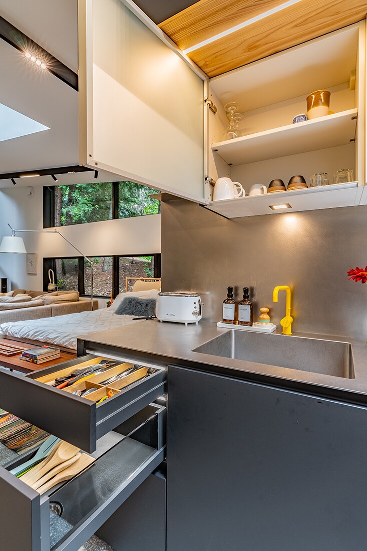 Ovo čarobno utočište koje se nalazi na Mastersu na drvetu, izgradio je Pit Nelson 2017. godine. Sjajna drvena unutrašnjost i prozori protežu se od poda do visokog plafona u ovoj udobnoj, ali luksuznoj kućici na drvetu. Ušuškana na trideset šumovitih hektara, prozračna unutrašnjost je udobno namještena i prepuna prirodnog svjetla. Opremljeni spoljnim toplim tušem, Wi-Fi mrežom, projektorom od 100 inča i hidromasažnom kadom, zaista možete da pobjegnete od svega među bujnim zimzelenim zelenilom na samo 10 minuta od Redmonda.