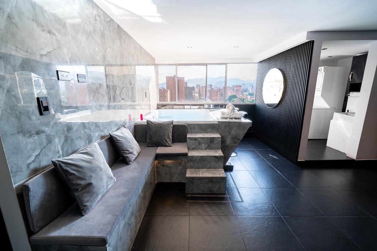 Potpuno renoviran luksuzni stan sa privatnim đakuzijem, terasom i klima-uređajem koji se nalazi u najboljoj stambenoj četvrti Laureles. U krugu od 5 minuta hoda od tržnog centra „Unicentro“, restorana, prodavnica namirnica, parkova, iznajmljivanja bicikala, biciklističkih staza i više opcija za zabavu. Za rezervacije od 3 ili više dana, izaberite između boce vina ili kompleta za đakuzi!!!!