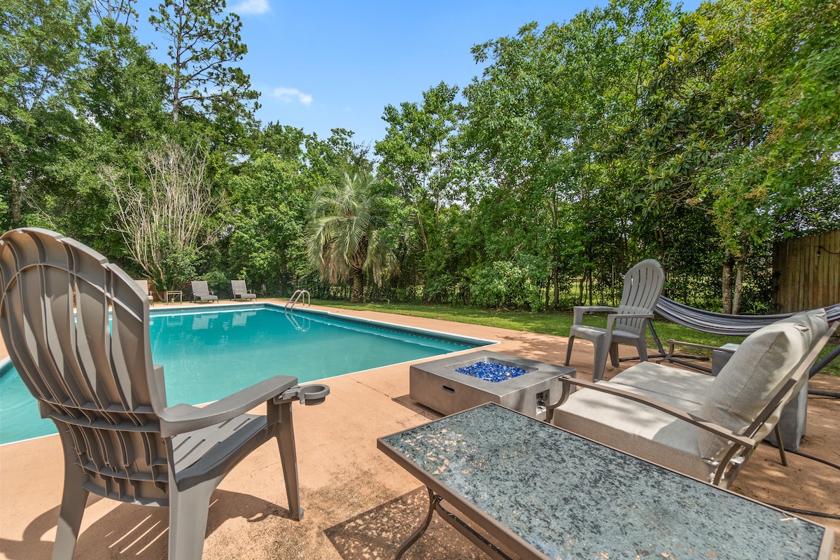 * Privatni bazen u nivou zemlje * Prikladno za pse * 2 milje do centra grada, 10 milja do plaže Pensakola * 2 spavaće sobe * Bračni kreveti (širine 150-179 cm) * Kamin * Privatno ograđeno dvorište * Astro Turfed Yard * Velika terasa * Centralno grijanje i klima-uređaj * Pametni televizori u dnevnoj sobi i glavnoj spavaćoj sobi * Roštilj na otvorenom * Parking za 2 automobila * Mašina za pranje i sušenje veša * Kompletno preuređen iznutra i spolja * Kancelarija/radni prostor * Trpezarijski sto
