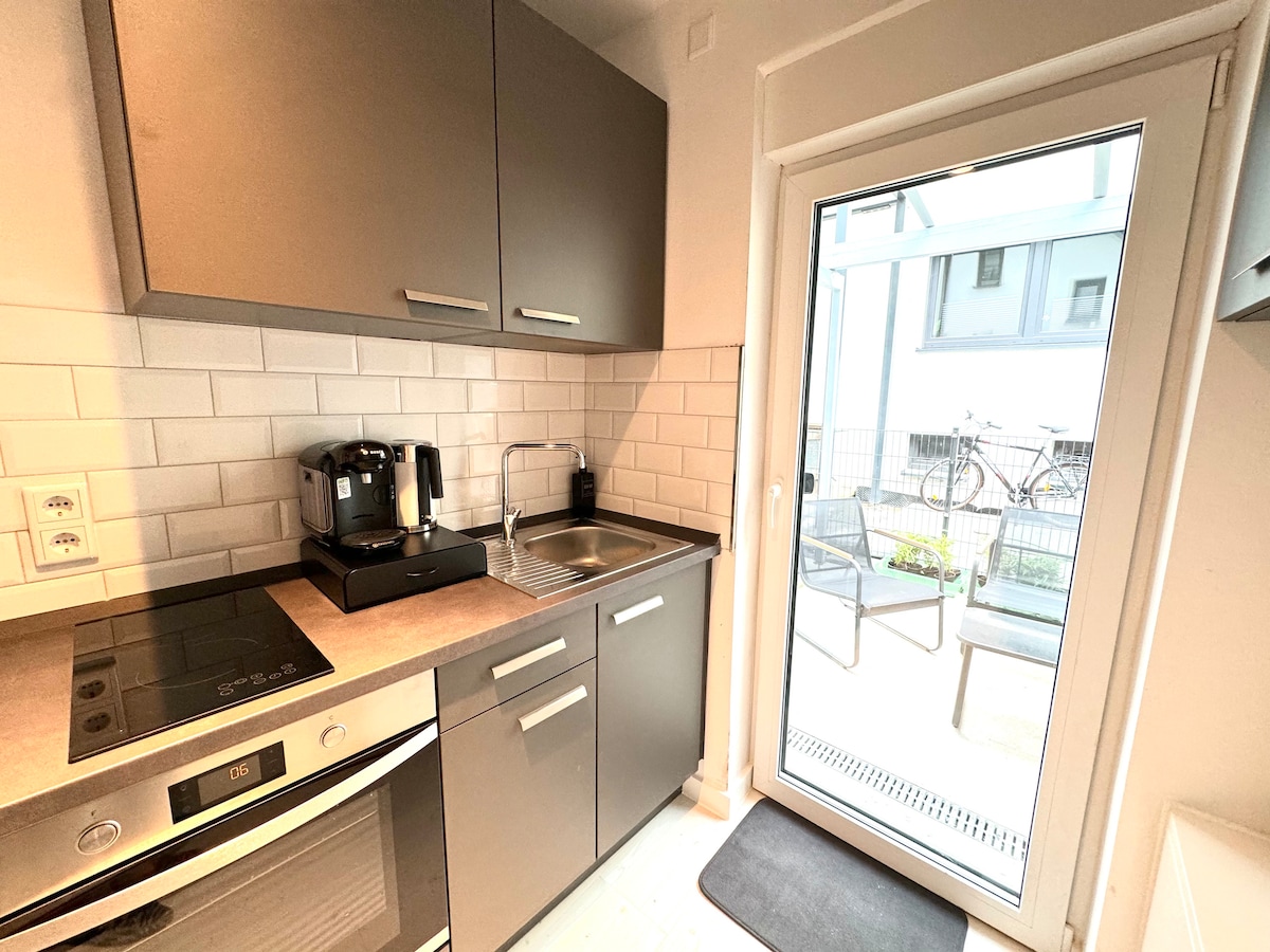 U okrugu Gartenstadt nalazi se naš novouređeni visokokvalitetan namješten stan površine 75m². Kupatilo sa otvorenom tuš kabinom i ostavom za odlaganje, dnevnim boravkom sa trpezarijom i kuhinjom koja je postavljena za merenje. U udobnoj spavaćoj sobi, krevet na razvlačenje i sofa vas pozivaju da se opustite. Obezbeđeni su i WC šolja za goste i garderoba. Stan je potpuno opremljen električnim roletnama. Smart TV (55 inča )sa kablovskom vezom i Netflix-om.