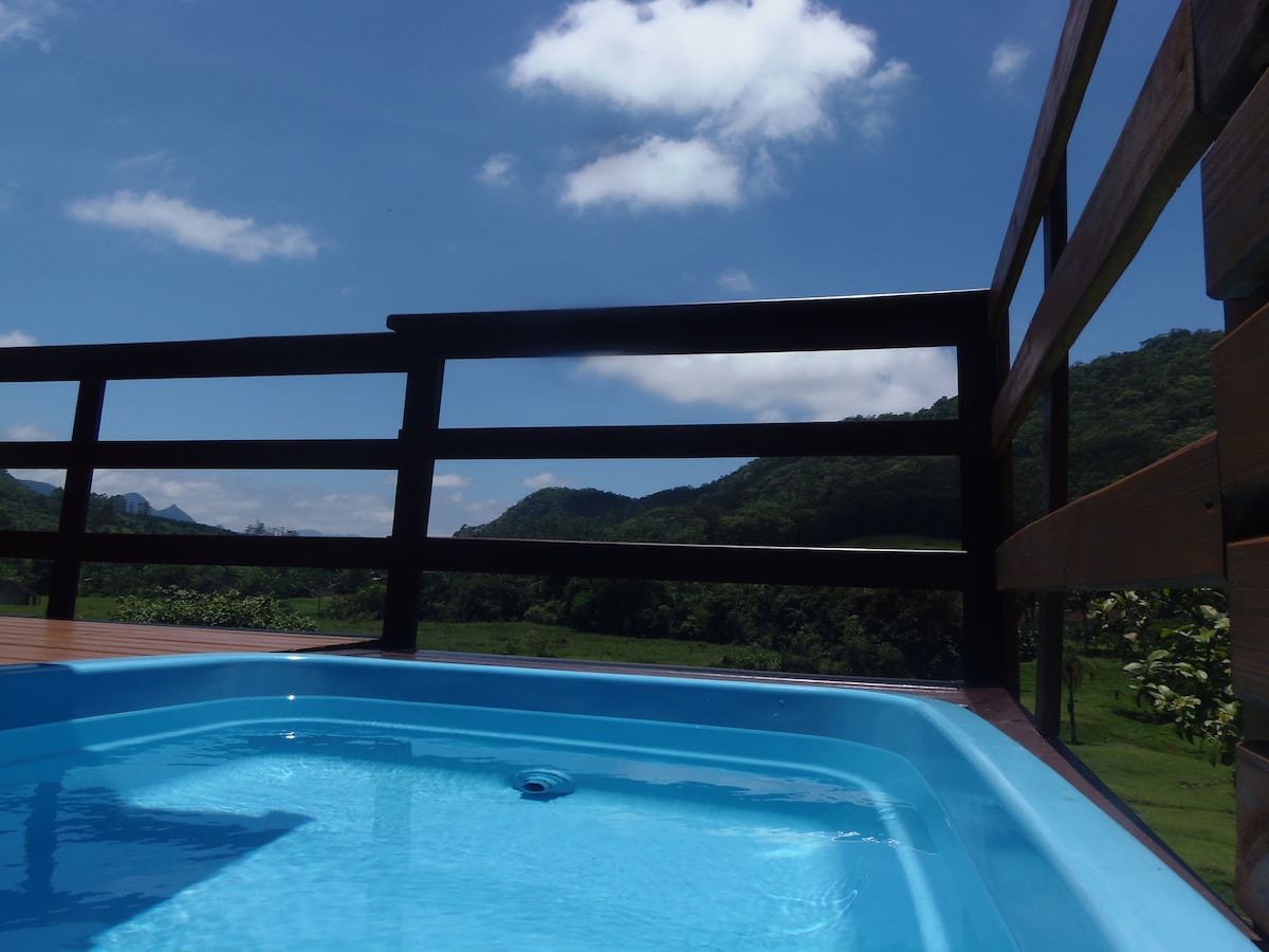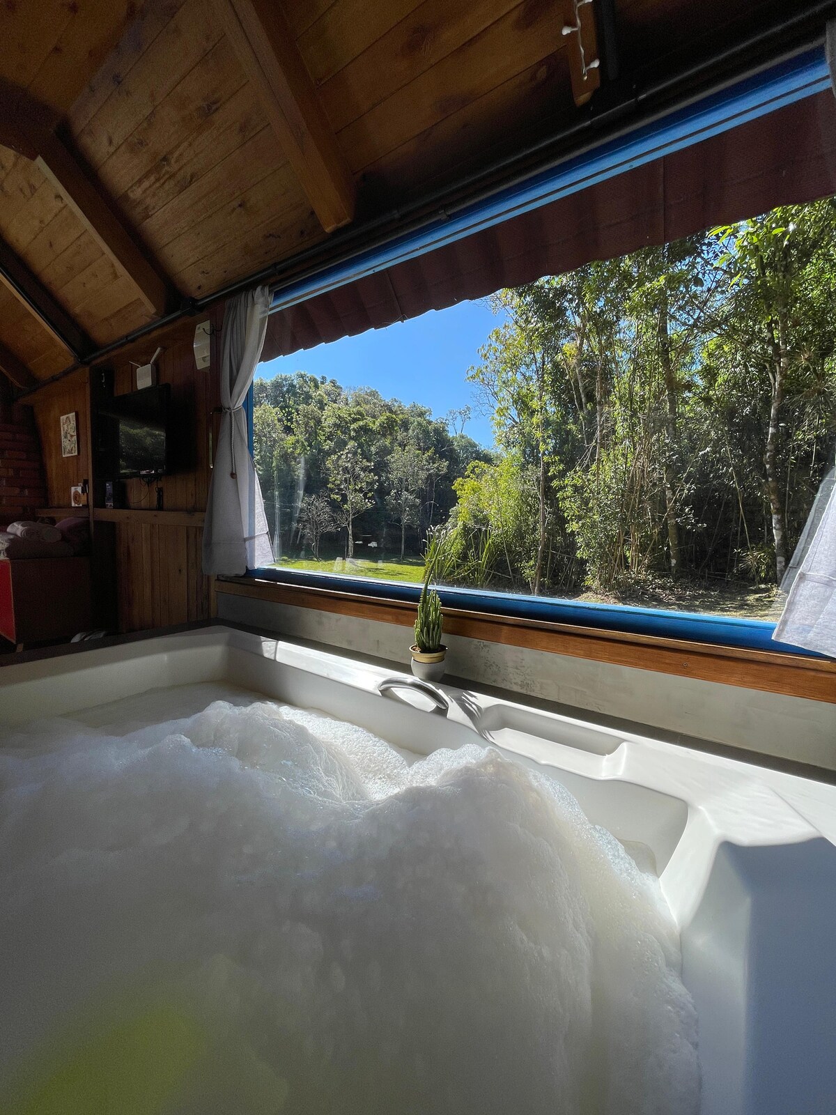 Integrisano okruženje između dnevne sobe, kuhinje i spavaće sobe, mezanina sa prostorom za čitanje, natkrivenom terasom, garažom i ekskluzivnim potokom. - Masažna kada za parove - Unutrašnja garaža - Životna sredina sa klima-uređajem - Tuš na gas - panoramski pogled - Baštenska garaža - Internet Fiber Optic 600mb Centar grada A 25 km de Pomerode/SC e 35 km de Blumenau/SC