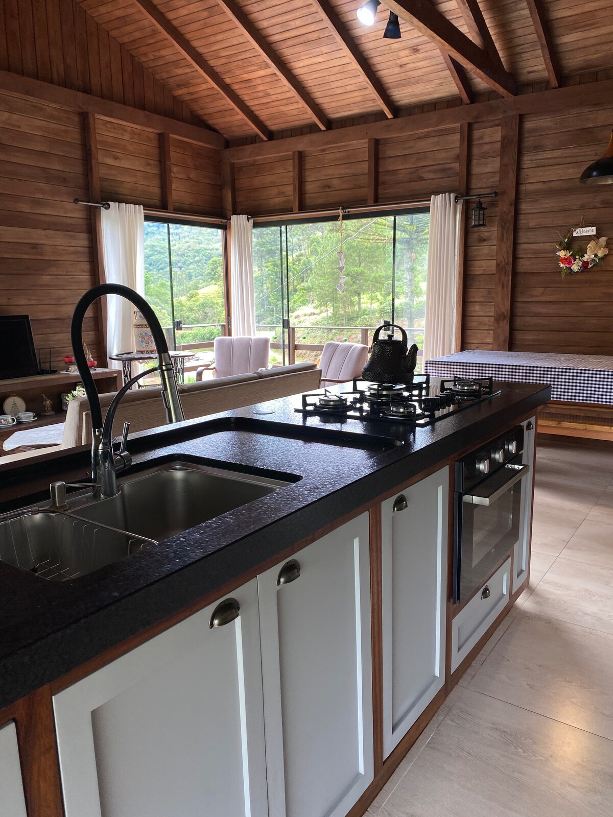 Ambiente integrado entre sala, cozinha e quarto, mezanino com espaço de leitura, deck coberto, garagem e ribeirão exclusivo. -Banheira de hidromassagem para casal -Lareira interna -Ambiente com ar condicionado -Chuveiro a gás -Vista panorâmica -Lareira de jardim -Internet fibra ótica 600mb No centro da cidade A 25km de Pomerode/SC e 35km de Blumenau/SC