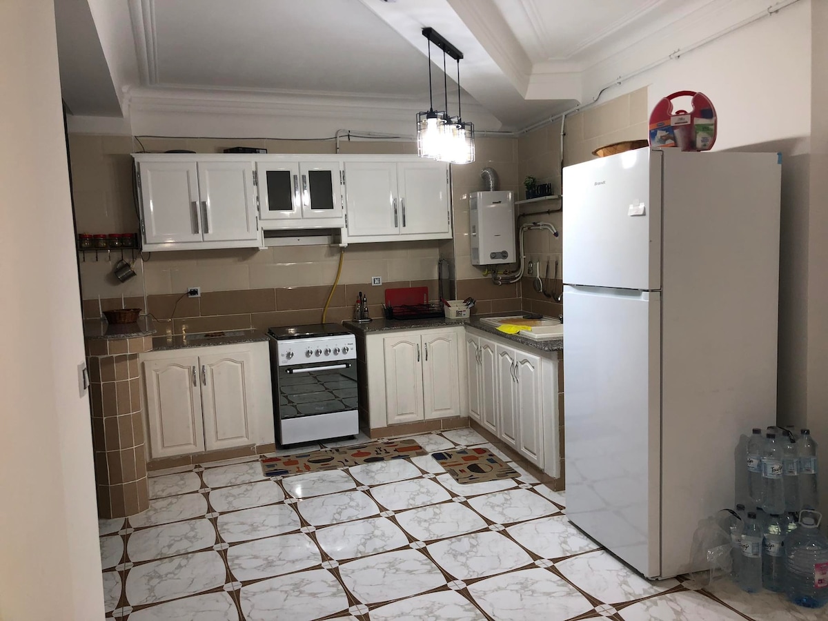 Bienvenue au Refuge de Ferrou ! Après le succès de notre premier logement, Au Refuge de Nadia, qui est le mieux noté d'Alger, nous sommes ravis de vous présenter notre nouveau havre de paix à Tizi Ouzou. Idéalement situé, cet appartement de 180m² entièrement refait à neuf bénéficie d'une localisation parfaite. Que ce soit pour un voyage en famille ou entre amis, le Refuge de Ferrou est l’endroit parfait pour vous détendre et profiter de Tizi Ouzou.