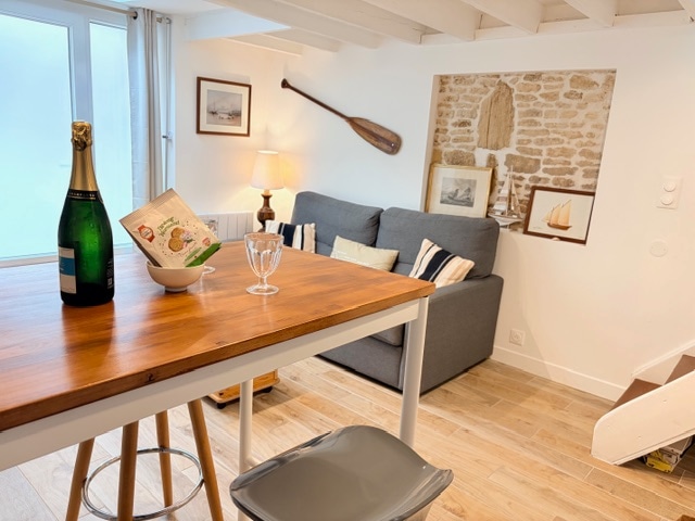 Šarmantna mala kamena kuća na plaži od 30 kvadratnih metara, mirna i opuštajuća, idealno smještena na 5 minuta hoda do mora. Na dva nivoa, uključuje jedan dnevni boravak/kuhinju u prizemlju, jednu spavaću sobu na spratu sa kvalitetnom posteljinom (160 cm x 200 cm) i jednu kupatilo/WC, opremljenu malom tuš-kabinom. Mala terasa ispred iznajmljivanja sa baštenskim stolom i dve stolice . Samostalna prijava - sef za ključeve Leto: Rezervacija: od subote do subote